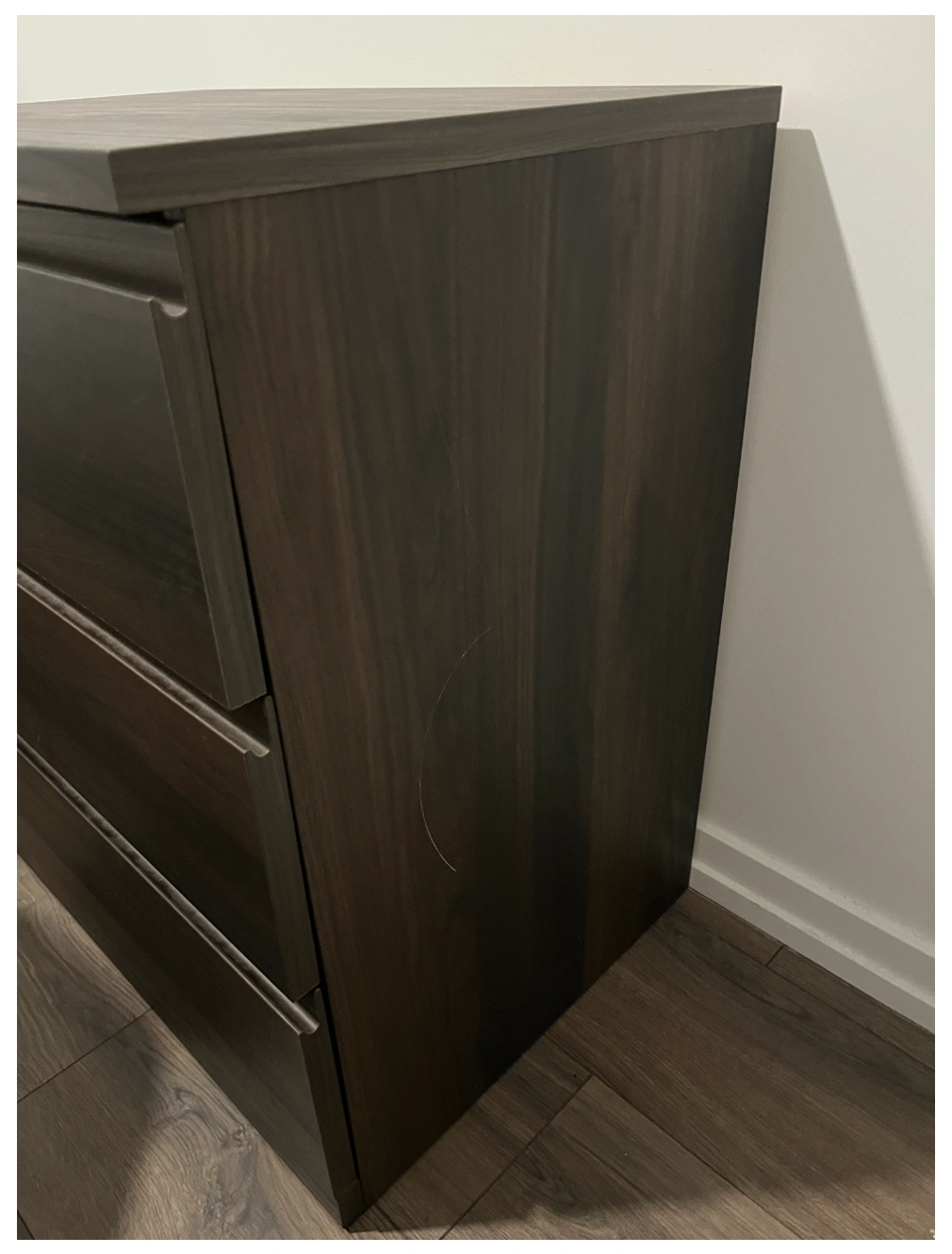 Selling a gently used IKEA 3-drawer dresser in brown. There are some minor scratches on the side and front, as shown in the pictures.(Pick up Only!)