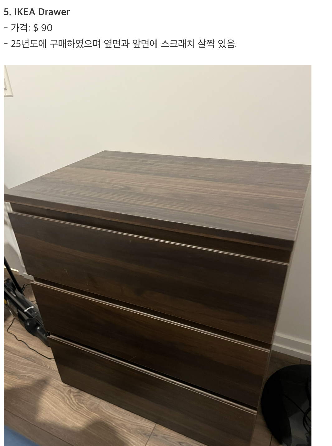 Selling a gently used IKEA 3-drawer dresser in brown. There are some minor scratches on the side and front, as shown in the pictures.(Pick up Only!)