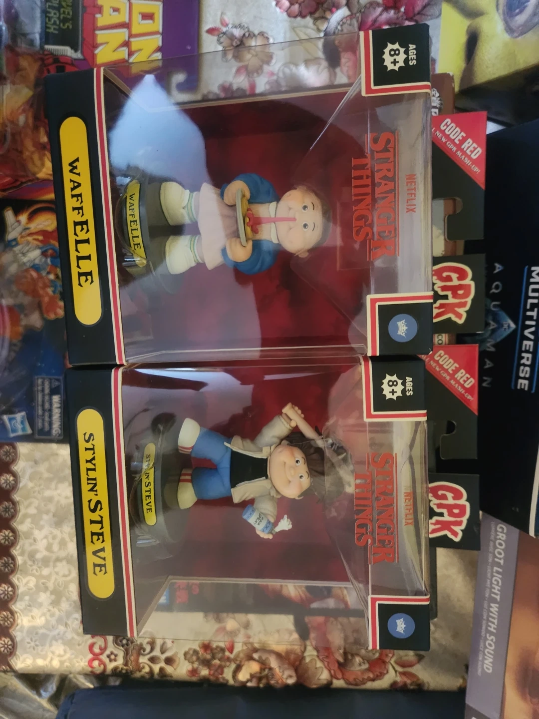 Selling two Stranger Things Garbage Pail Kids (GPK) figures: Waffelle and Stylin' Steve! These are new and in their original packaging. Recommended for ages 8+ sold as set