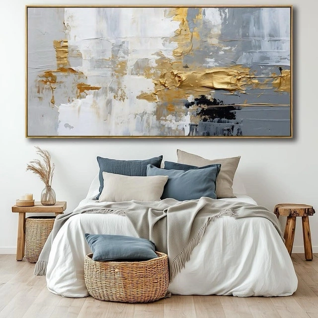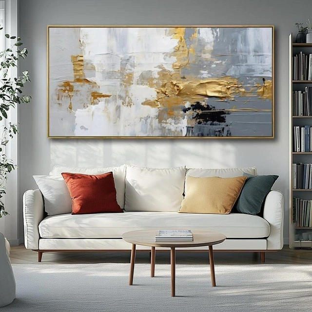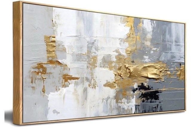 This piece is in brand new condition and ready to hang. Size: Large format. Colours: Grey, White, Gold, Black. Style: Abstract. Framing: Gold trim. If the ad's still up, it's still up for grabs. Pick up near Parkway Public School, Cambridge.