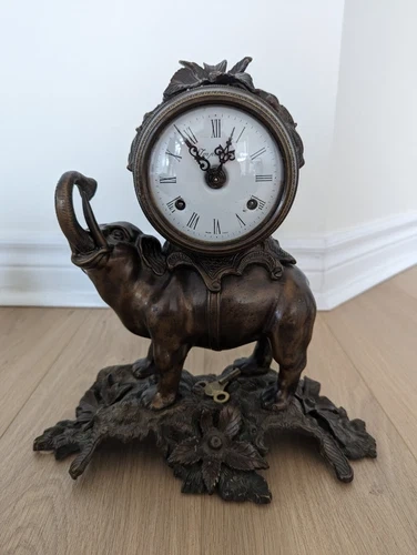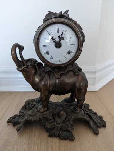 Imperial Brevettato Italy Bronze Elephant Clock - Antique, Runs