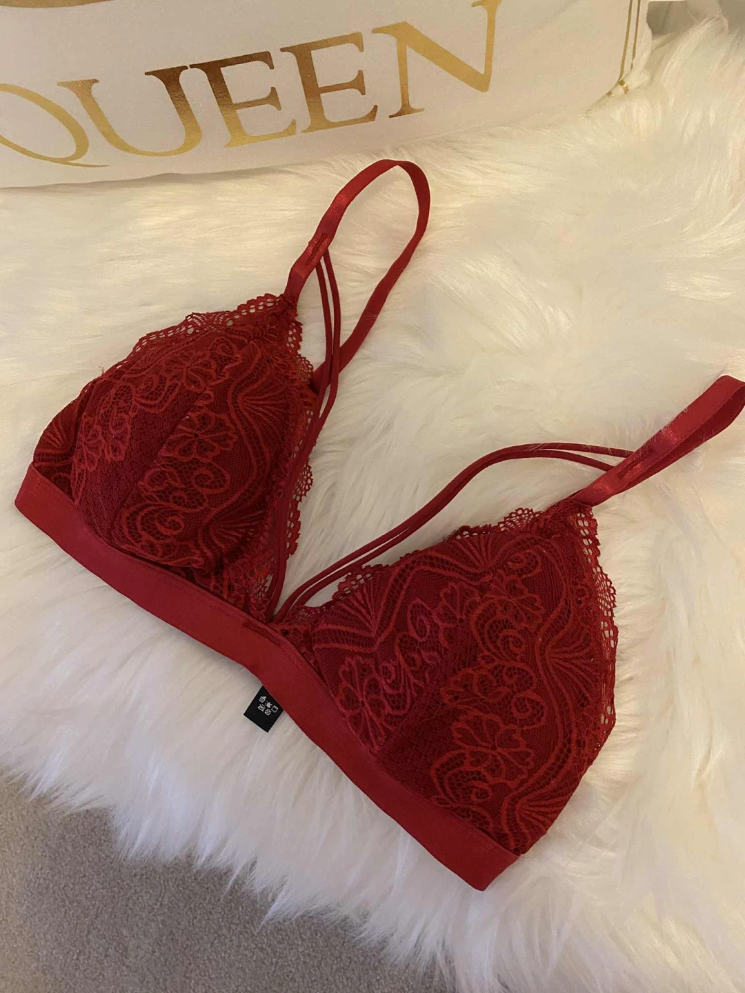 Selling a beautiful red lace bra. It's in great condition and has a delicate, intricate design. Perfect for adding a touch of elegance to your wardrobe!