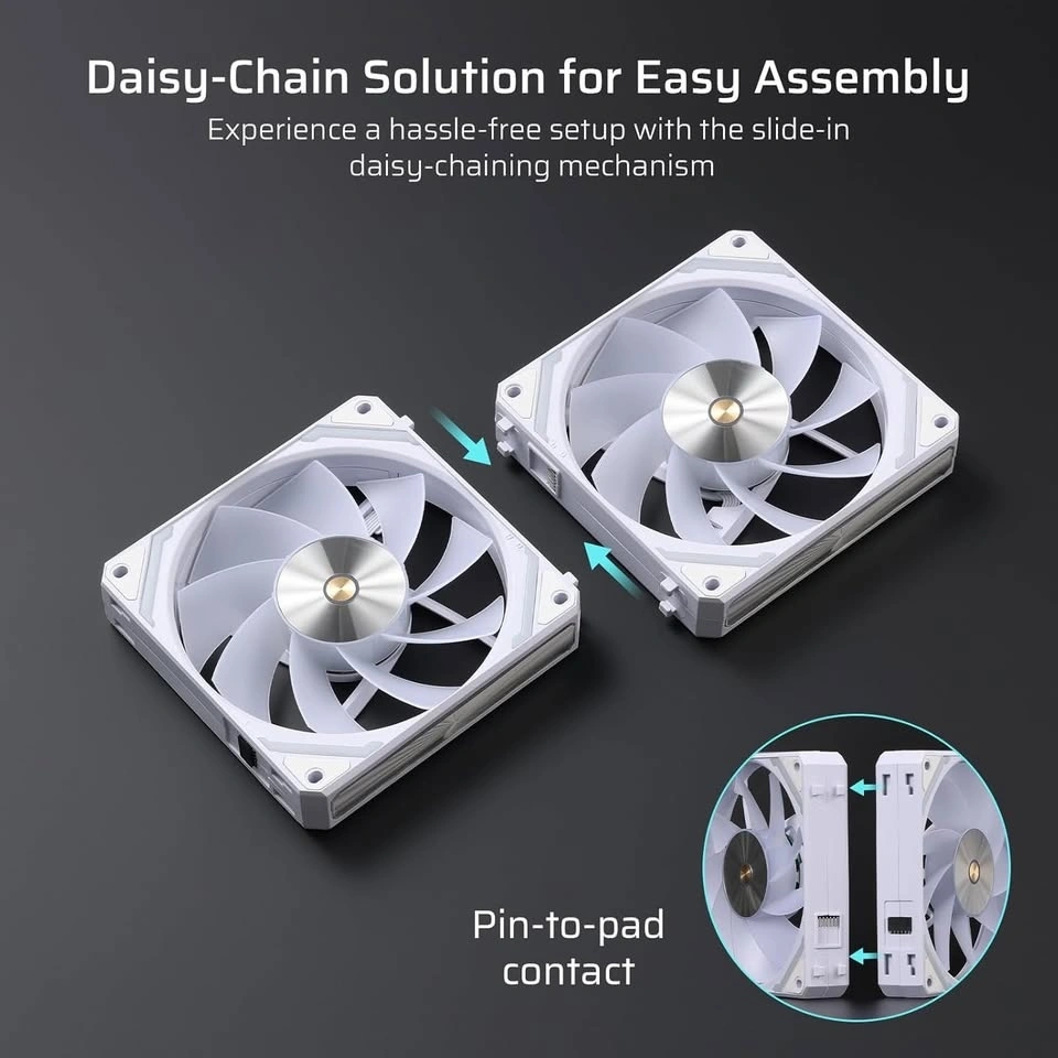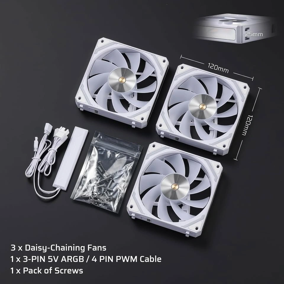 LTC CF-121D 120mm PC Case Fan, Daisy-Chain Connection, 5V 3Pin ARGB Lighting, 4 Pin PWM Case Fan, for Radiator/Computer Case Cooling, 120x120x25mm, 3 Pack, White