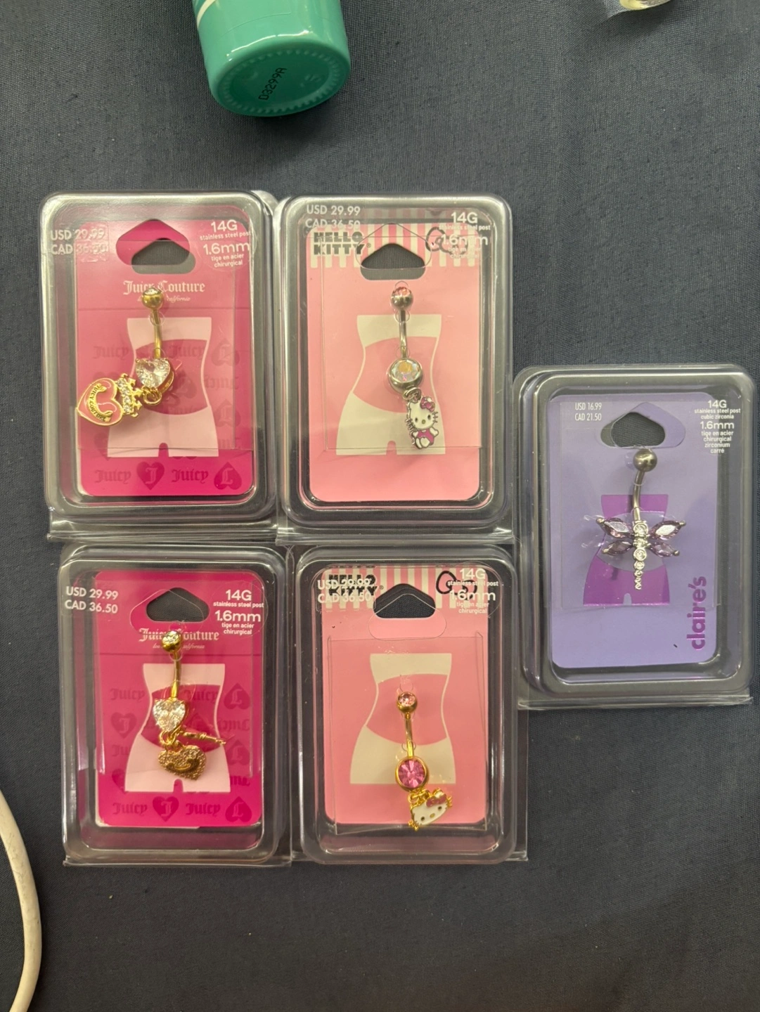 Five brand new belly button piercings, never worn.
