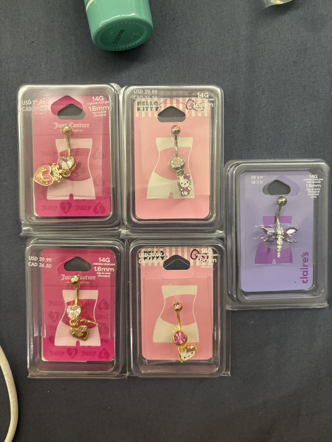 Five brand new belly button piercings, never worn.