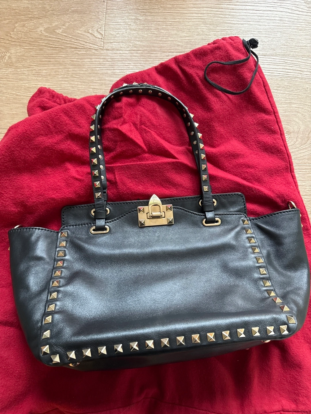 Authentic Valentino Garavani Black Leather Studded Tote Bag