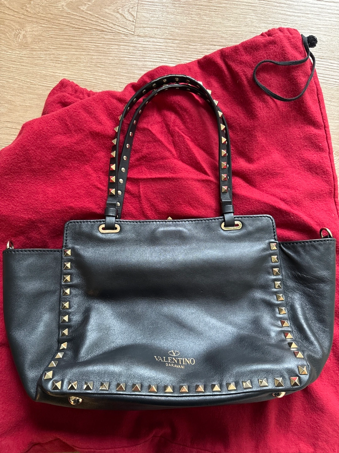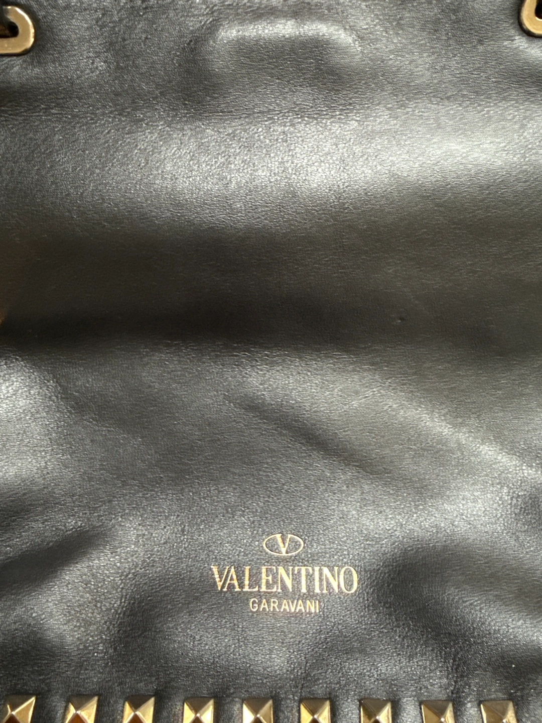 Authentic Valentino Garavani Black Leather Studded Tote Bag