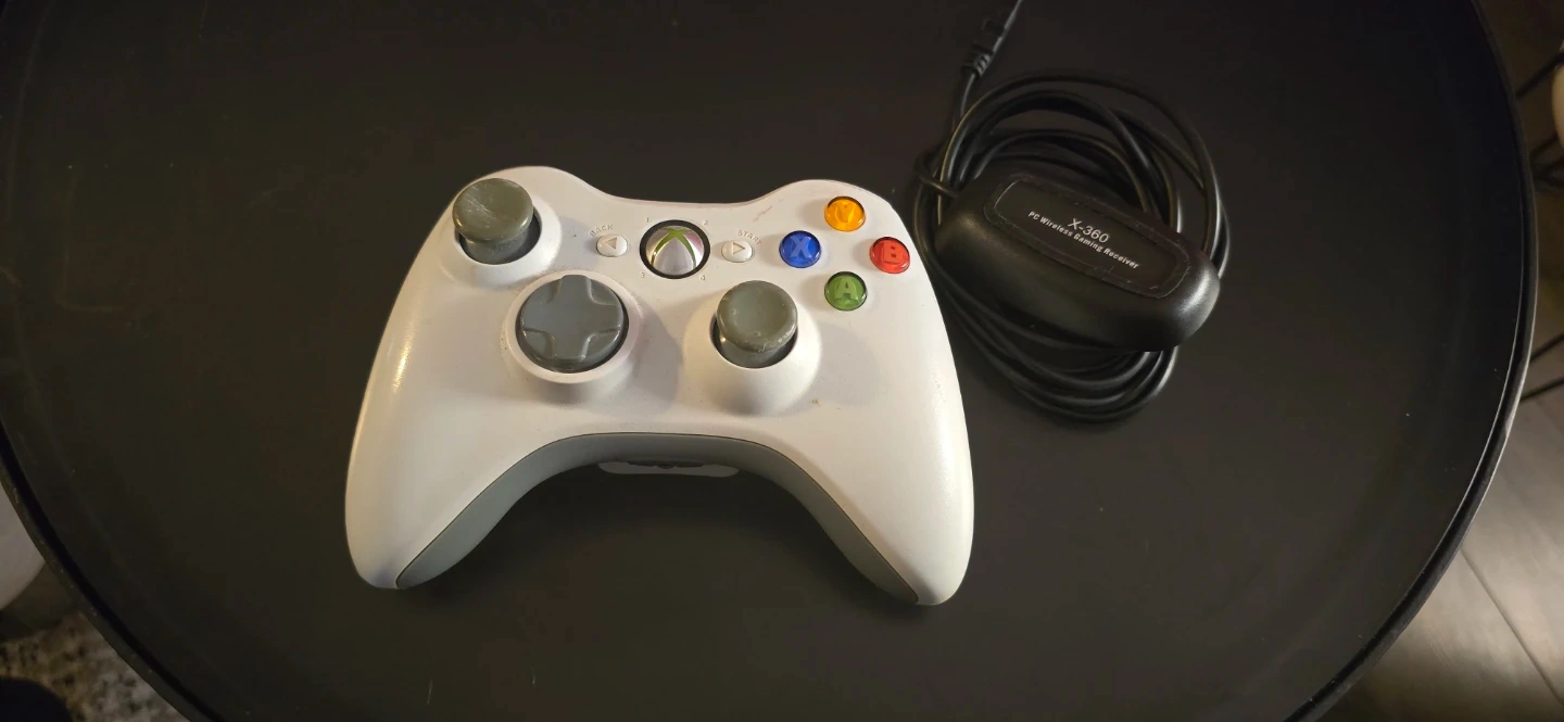 This is a white Xbox 360 wireless controller with a PC wireless gaming receiver. It connects your Xbox 360 controller to your PC for gaming. It's a great way to enjoy PC games with a familiar controller!