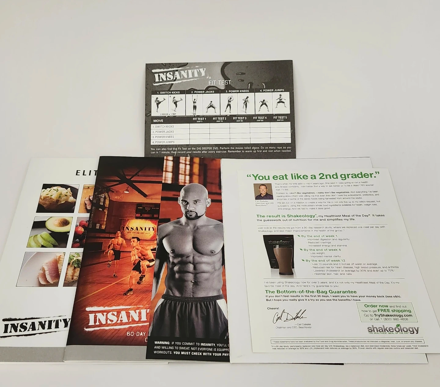 A motivational 60 day calendar that shows you which workout to do each day, along with the insanity fit test.