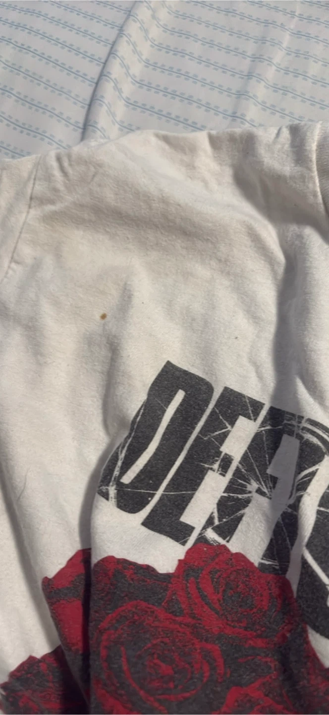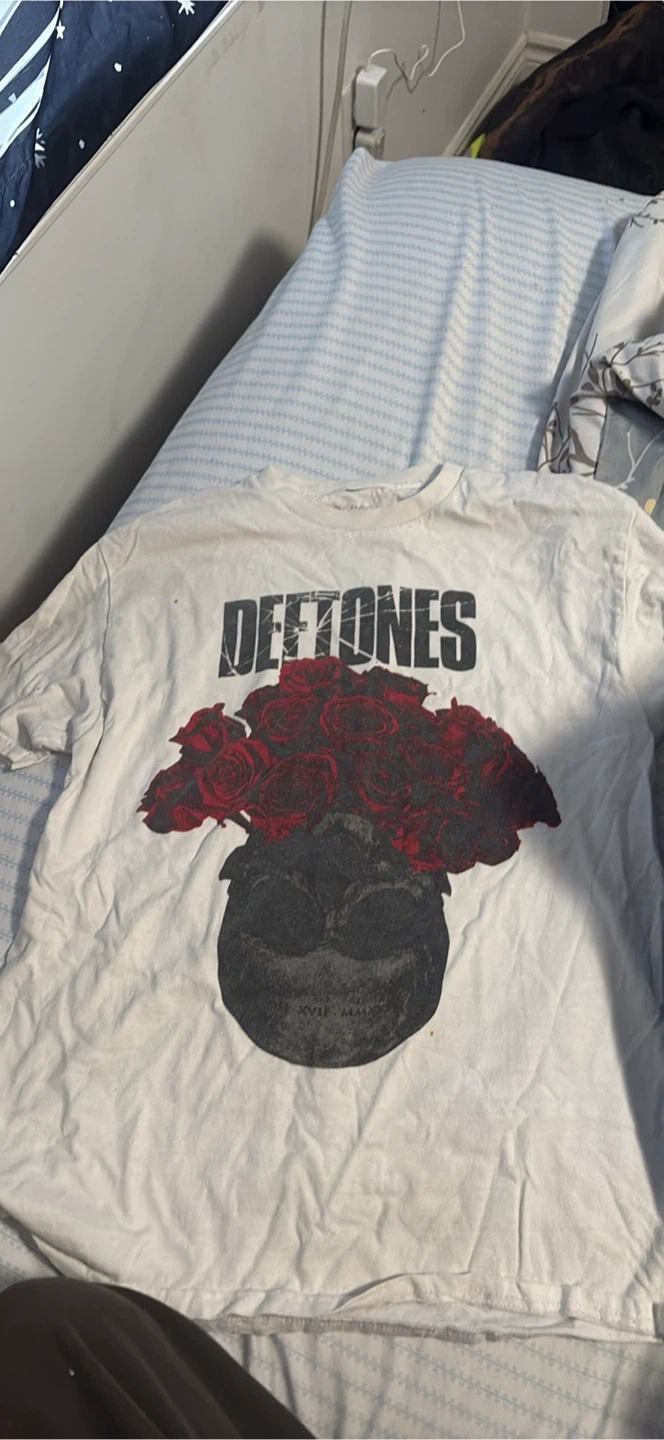 Buy & SellDeftones White Graphic T-ShirtDeftones White Graphic T-Shirt$9Selling a Deftones graphic t-shirt in white. It has a rose and skull design. There are some signs of wear, as pictured.ConditionGoodSizeMedium BrandDeftonesWHERE TO MEETCheck LocationView MapSELLERverifiedBrittanyChilliwack Proper Village West650 reviews0 chats·0 favorites·5 viewsSEND CHAT TO SELLERHi Brittany! I’m interested in your listing.Hi Brittany! I’m interested in your listing.Get the Karrot app to chatSign In to chat