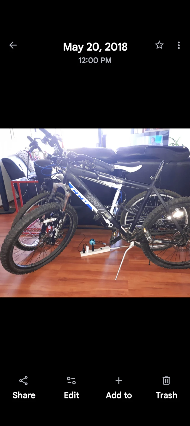 Norco Rival mountain bike in black. It's a sturdy bike ready for trails. Includes a water bottle holder. New tires and tubes . Willing to negotiate price