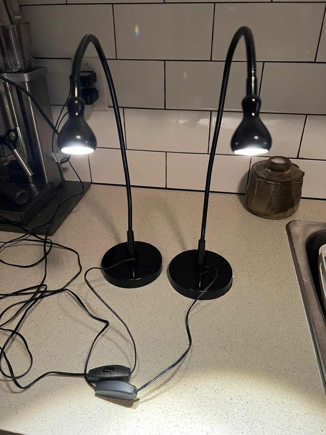 Selling a pair of IKEA Jansjo gooseneck desk lamps in black! They're flexible and articulating, perfect for a desk or bedside table. Originally bought for $37.99 each.