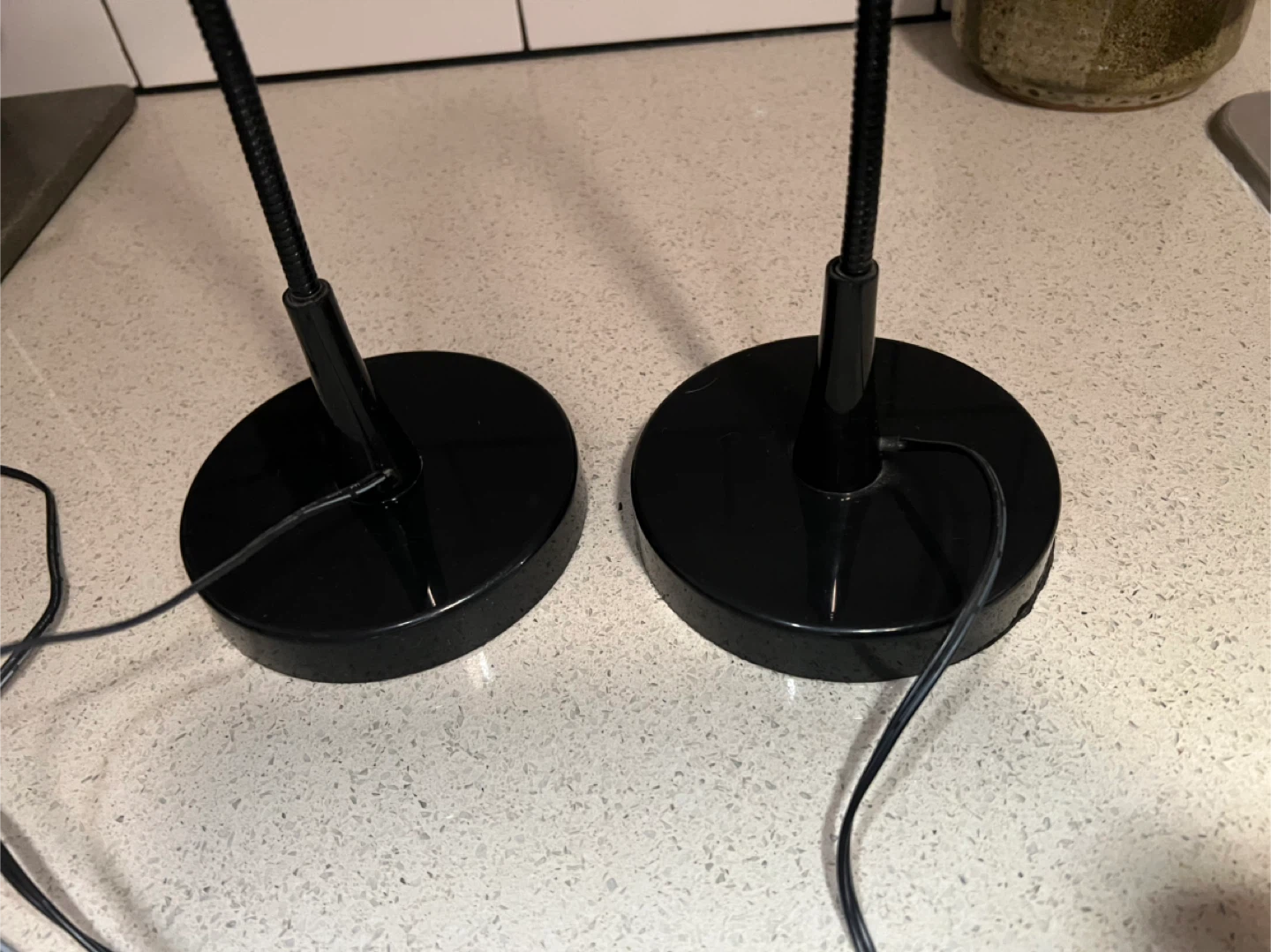 Selling a pair of IKEA Jansjo gooseneck desk lamps in black! They're flexible and articulating, perfect for a desk or bedside table. Originally bought for $37.99 each.