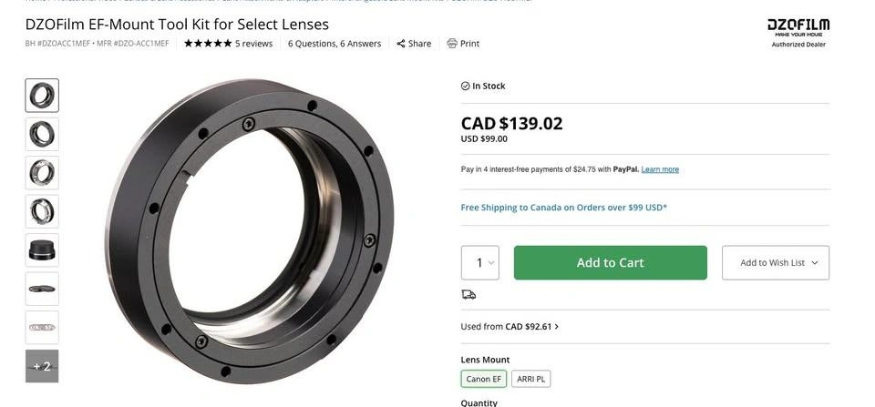 26Selling brand new DZOFilm EF-Mount Tool Kit. BH online pricing is 139.02CAD + HST I'm selling this for 90CAD cash More info here: https://www.bhphotovideo.com/c/product/1608417-REG/dzofilm_dzo_acc1mef_ef_mount_tool_kit.html Cash and Pick Up Only Location: Parklawn and Lake Shore Blvd W