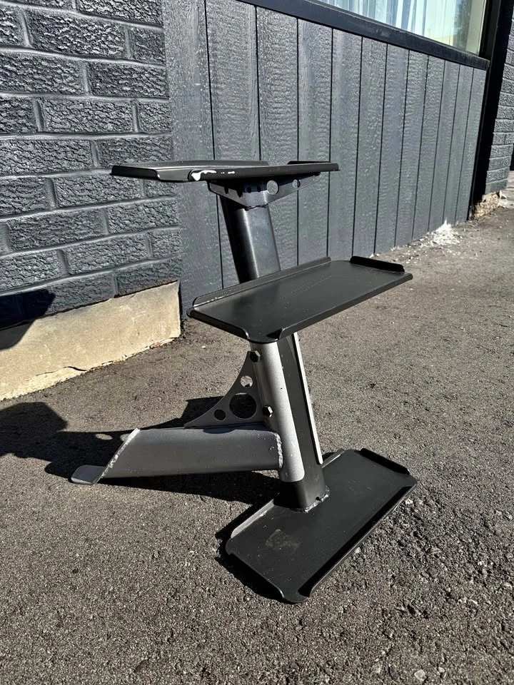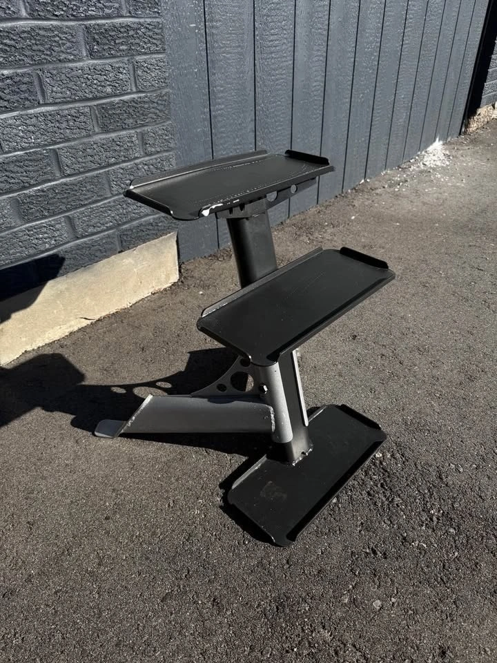 Selling a Body-Solid heavy-duty 3-tier rack in great condition. Built with solid commercial-grade steel and designed to hold up to 3 pairs of kettlebells, deadballs etc. Making it perfect for keeping heavier pairs organized and off the floor. Compact footprint so it works great for home gyms, garage gyms, or personal training studios. Very sturdy and durable piece of gym equipment. $120