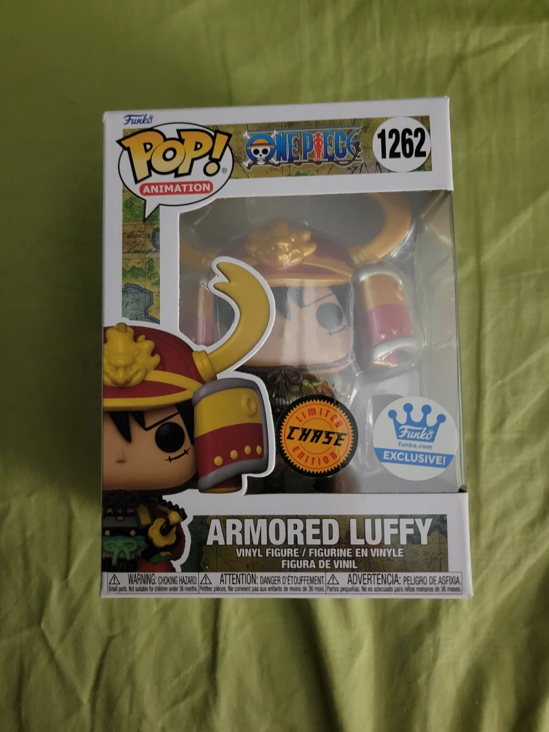 This is a Funko Pop! Animation vinyl figure of Armored Luffy, number 1262. It's a limited chase edition figure. Includes original packaging.