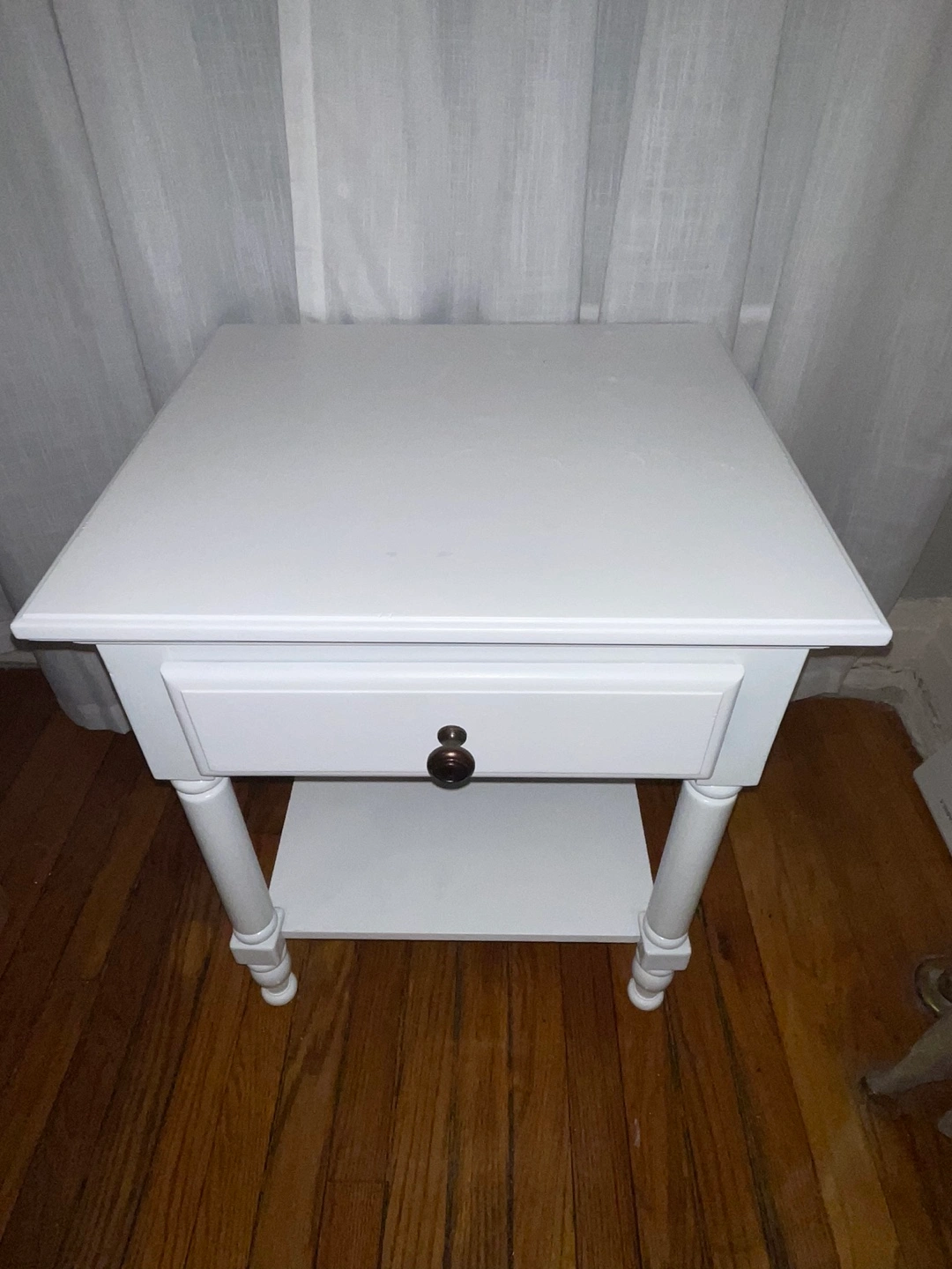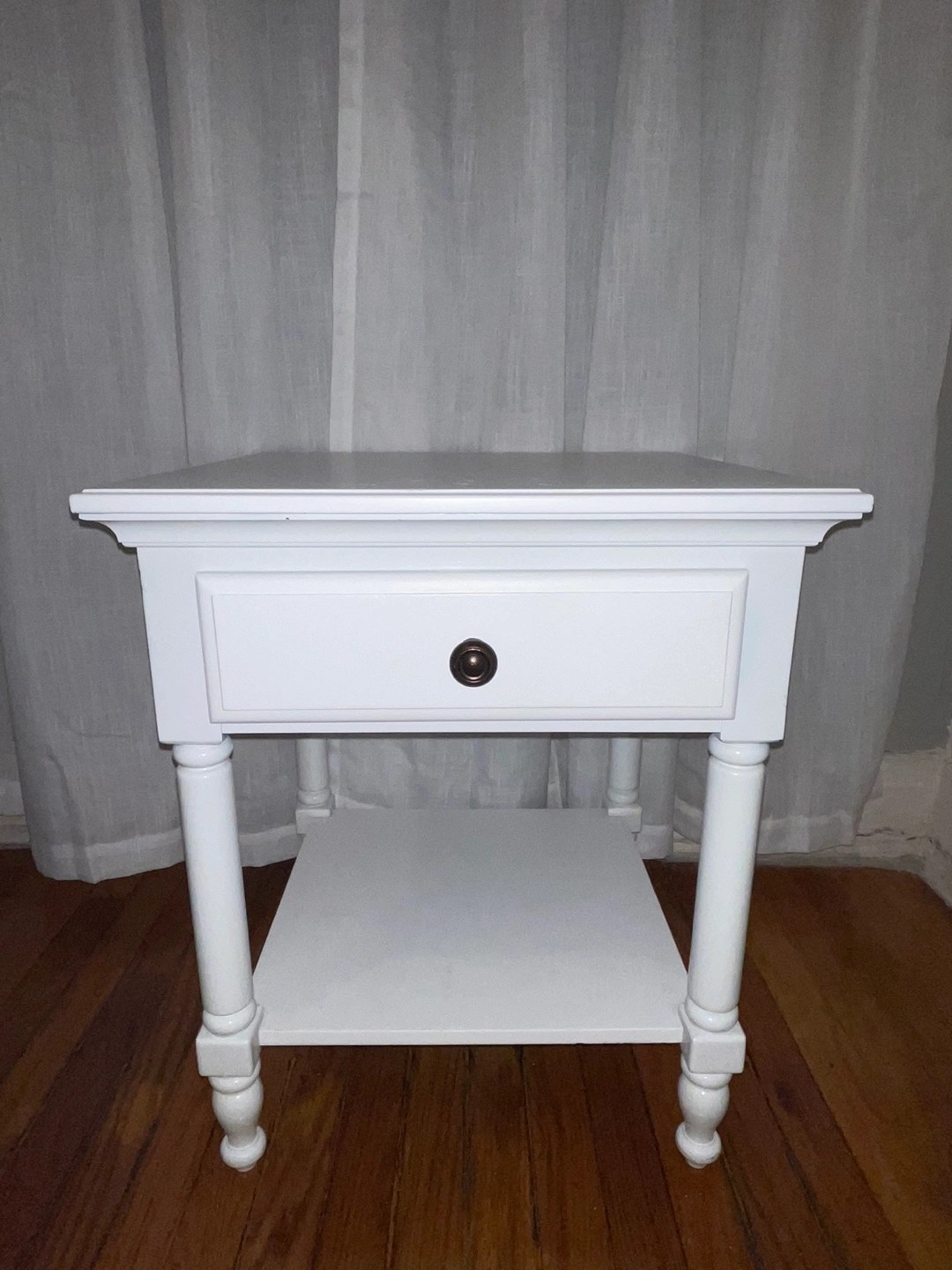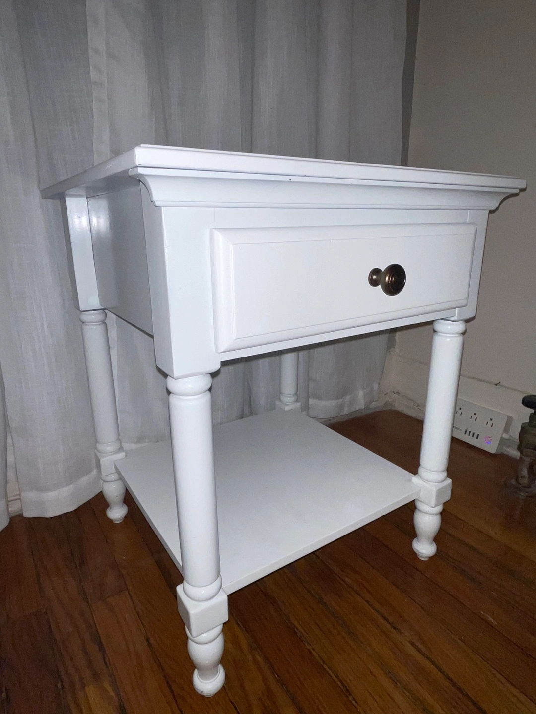 This elegant white wooden nightstand is a versatile and timeless addition to any bedroom or living space. It features: