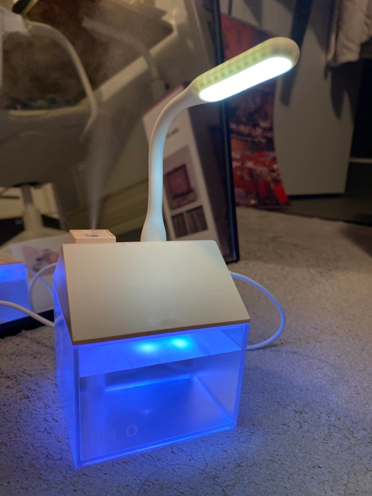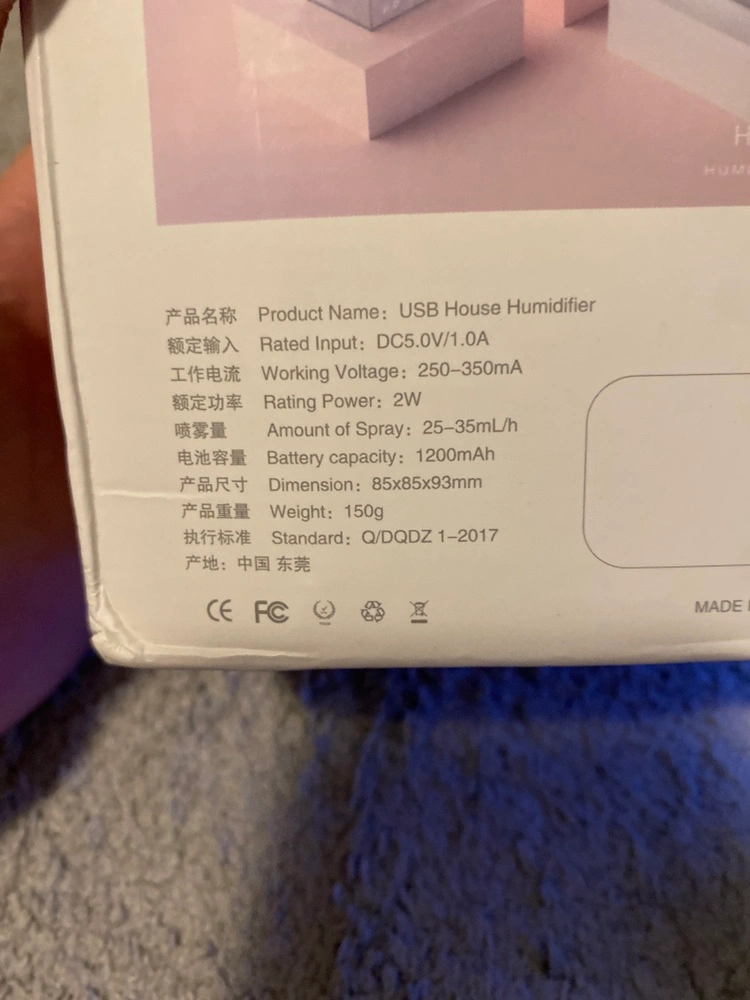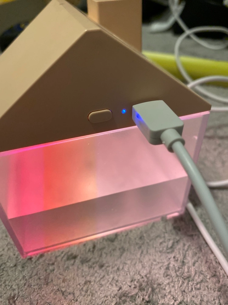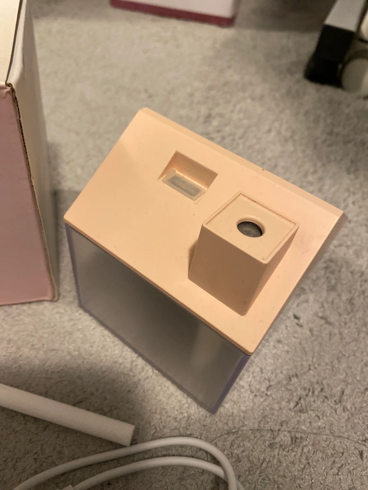 This is a small pink house-shaped humidifier that lights up (changes colour). It comes with a USB cable, a USB fan, and USB light accessory that can be attached to the humidifier (see second picture). Comes with box, manual, and extra filter. Works great and super cute for your desk :)