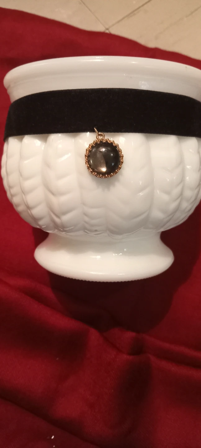 Black Velvet Choker Necklace with Stone Pendant