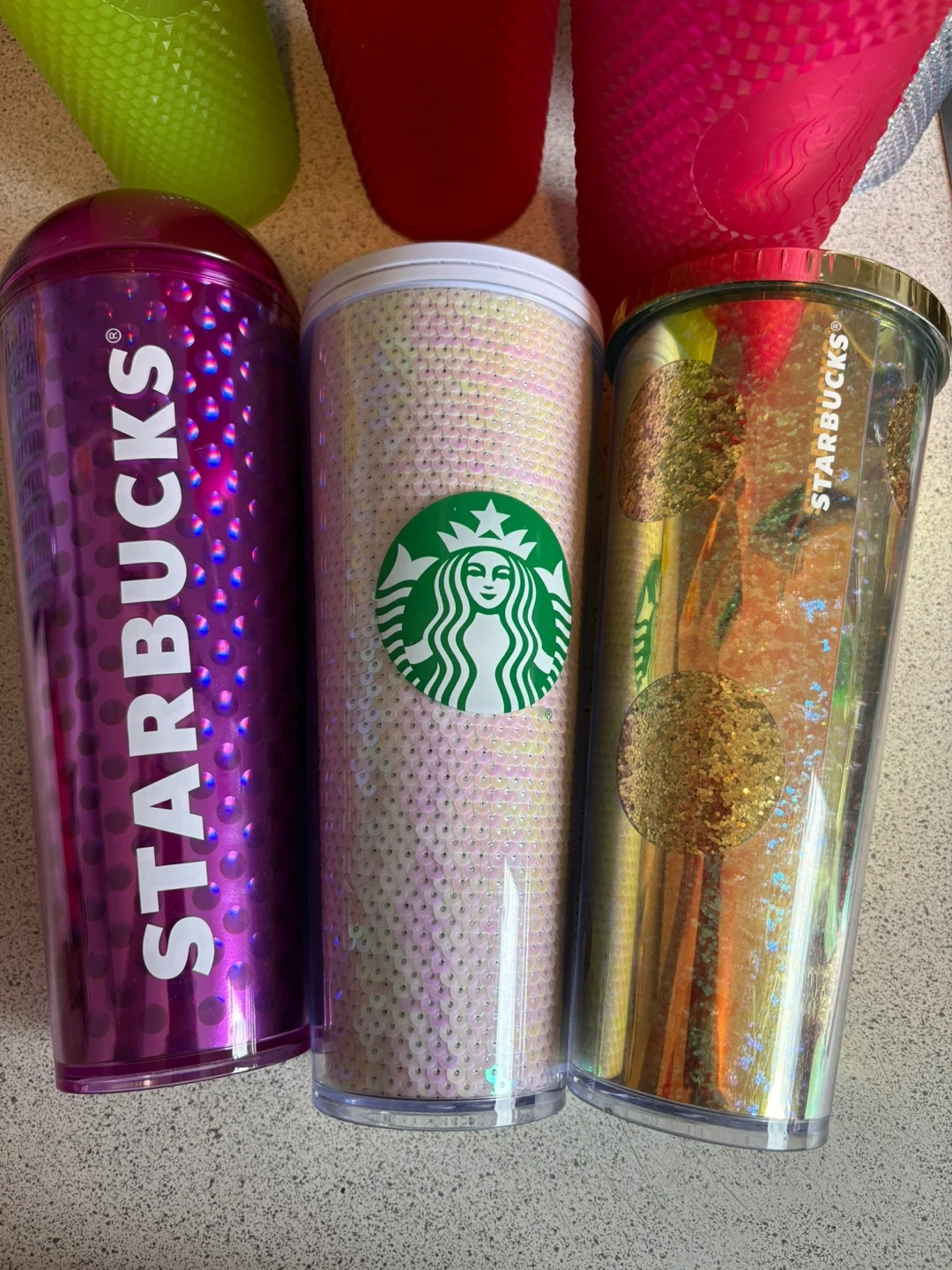 Starbucks Tumblers (3) - Purple, Pink Sequin, Gold Iridescent