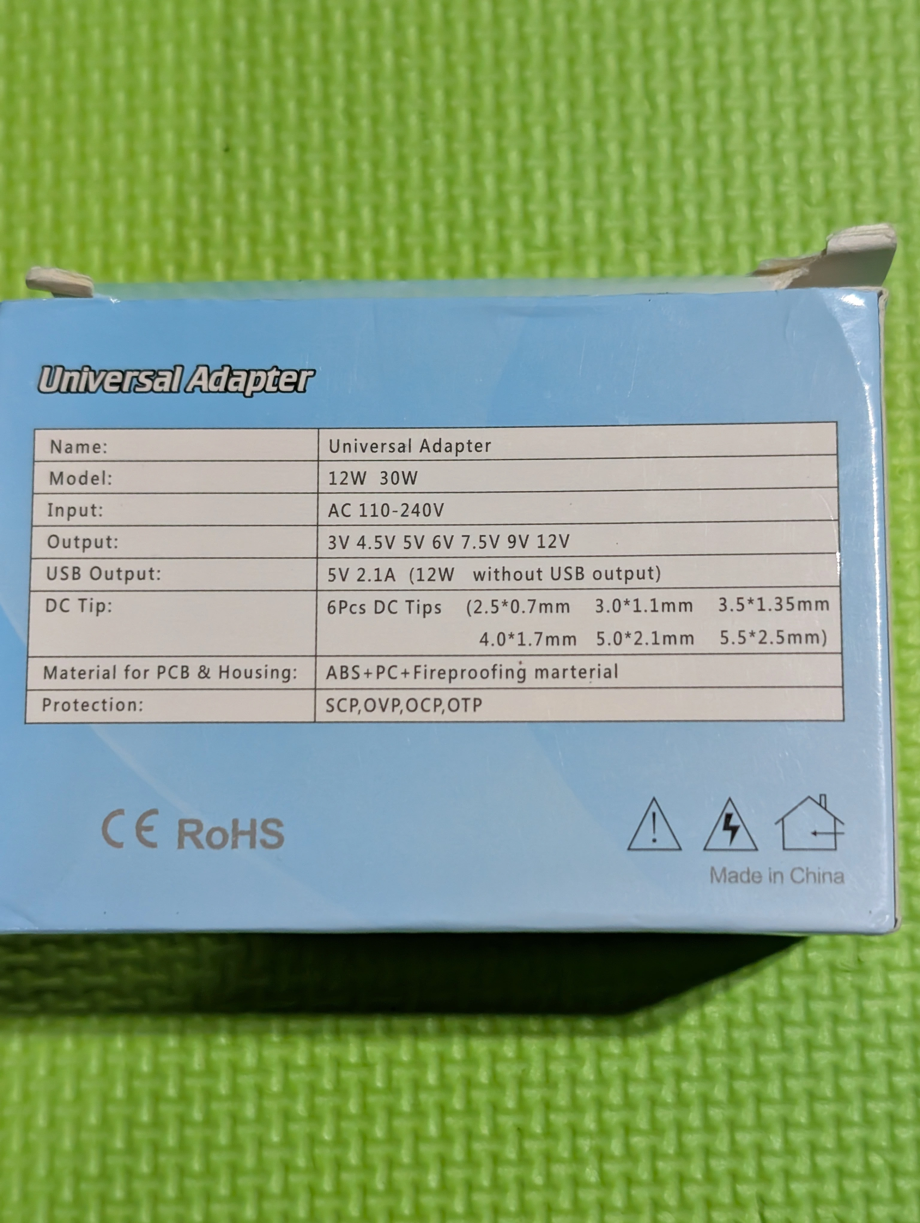 Selling a Universal AC/DC Adapter LP-1000. It supports multiple voltages including 3V, 4.5V, 5V, 6V, 7.5V, 9V and 12V. It comes with multiple adapter tips for different devices and a USB port for 5.0V 2.1A charging.