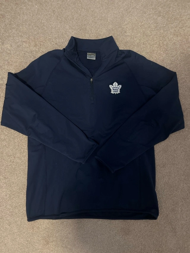 Get ready to cheer on the Leafs with this gently used 1/4 zip pullover, perfect for showing your team spirit in cooler weather! Featuring the iconic Maple Leafs logo, this pullover is in good condition and ready for a new season.