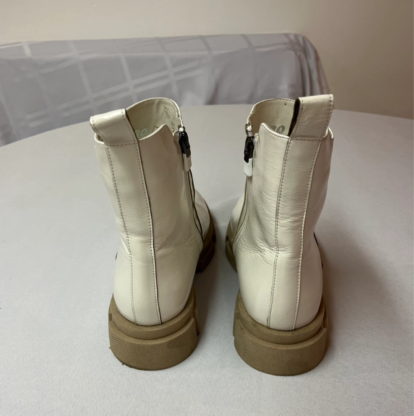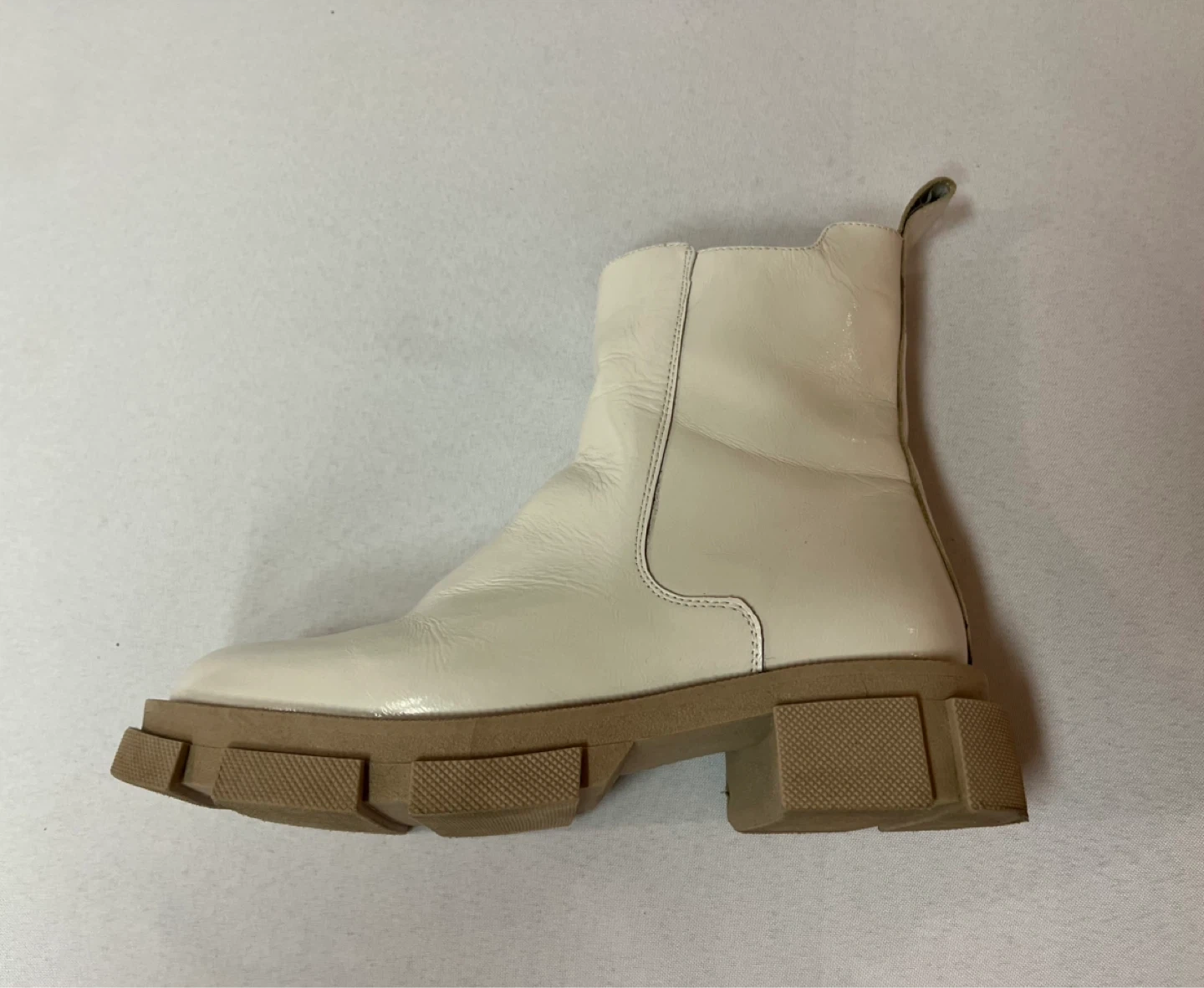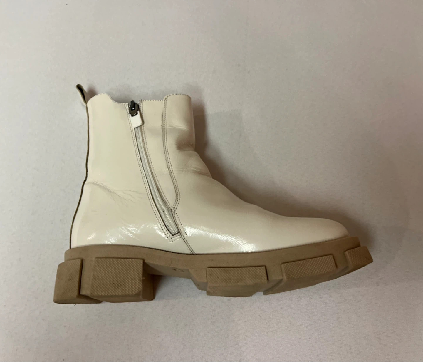 9.5 - Ladies Off White Patent Leather Boots