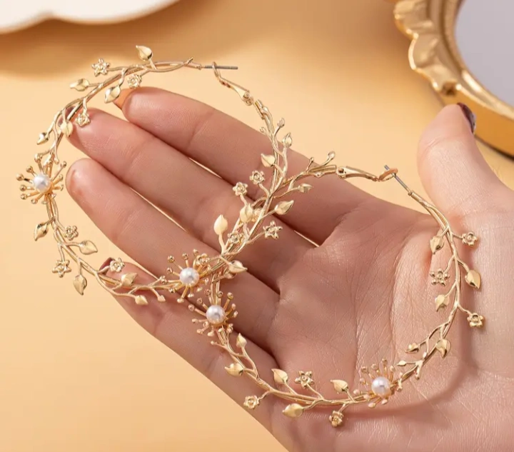 These are a pair of gold hoop earrings with a floral design. They feature leaves and small flowers, with pearl-like accents in the centre of some of the flowers. Perfect for adding a touch of nature-inspired elegance to your look!