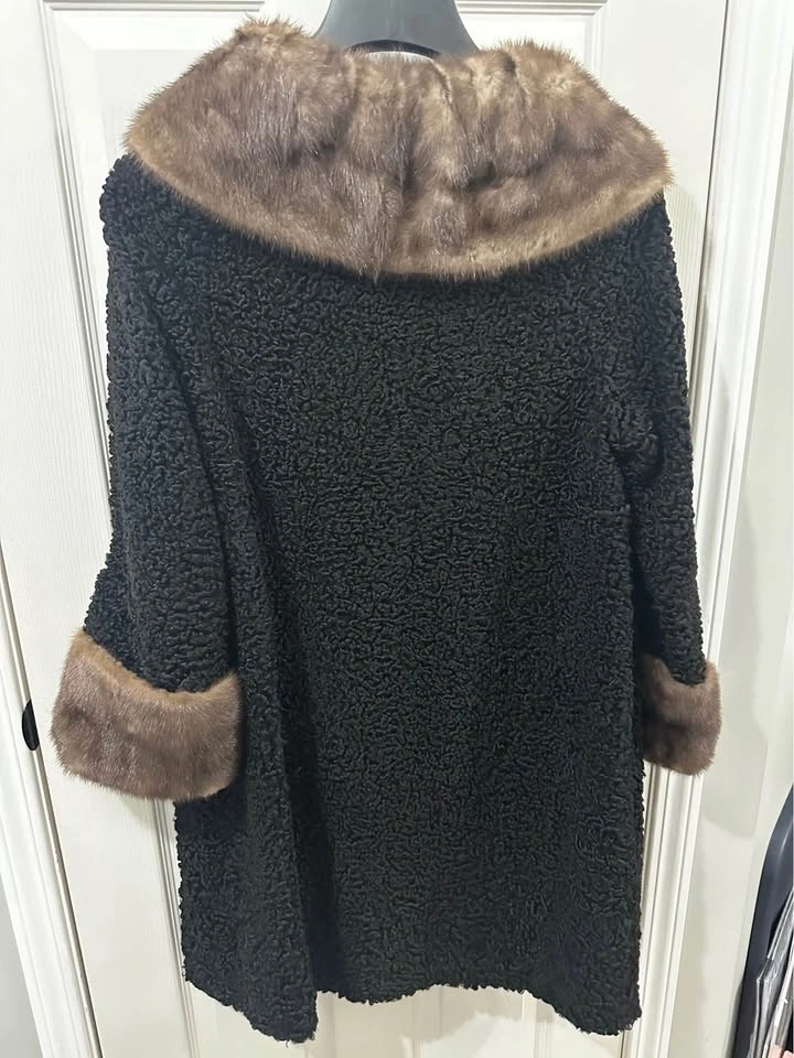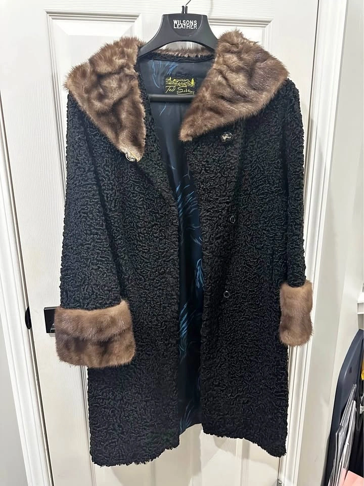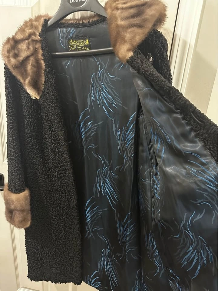 Vintage Persian Lamb Ted Sisson Mink Fur Trim Long Coat