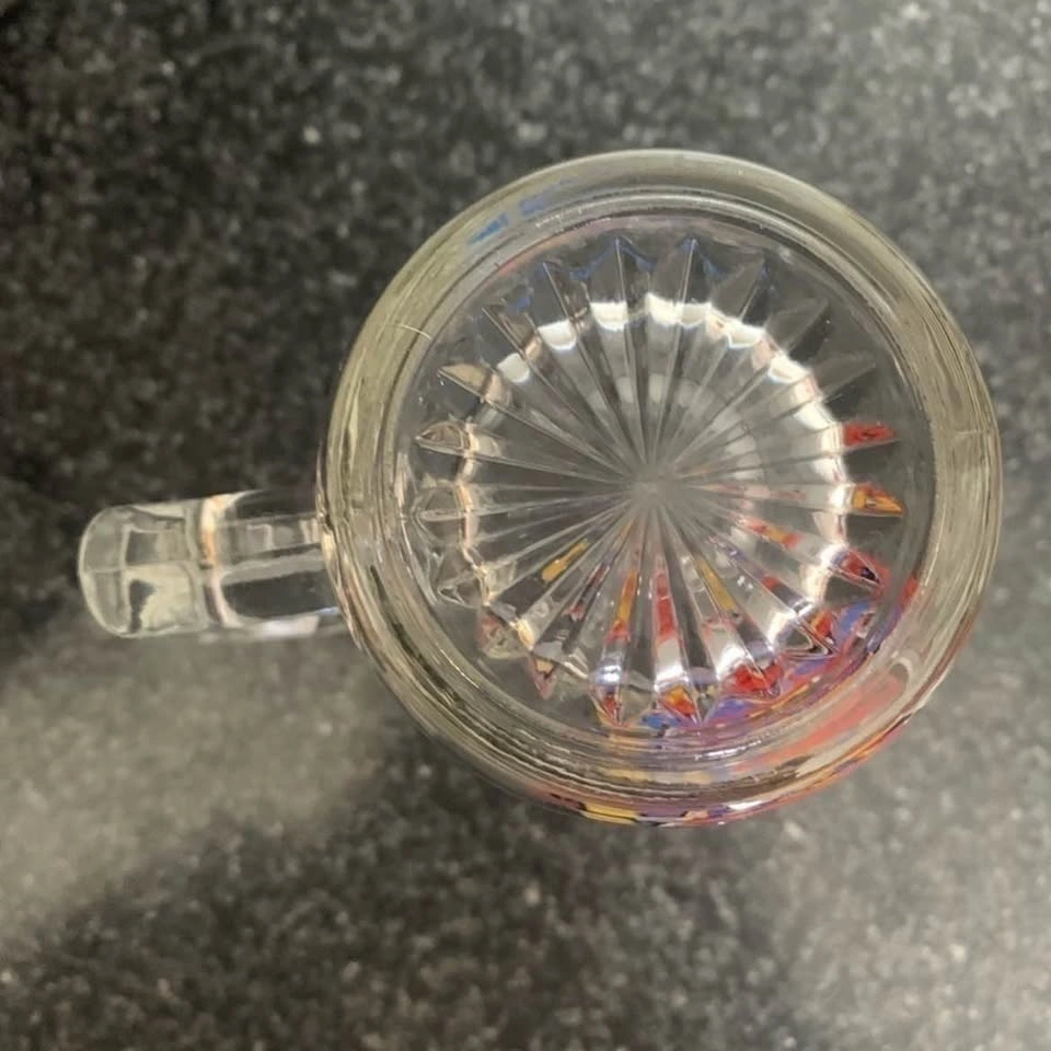 Vintage 1987 Bud Light Spuds MacKenzie beer mug/stein featuring “The Original Party Animal” in his Hawaiian shirt, lounging with a cold beer. Classic heavy glass with a starburst cut base and sturdy handle.
