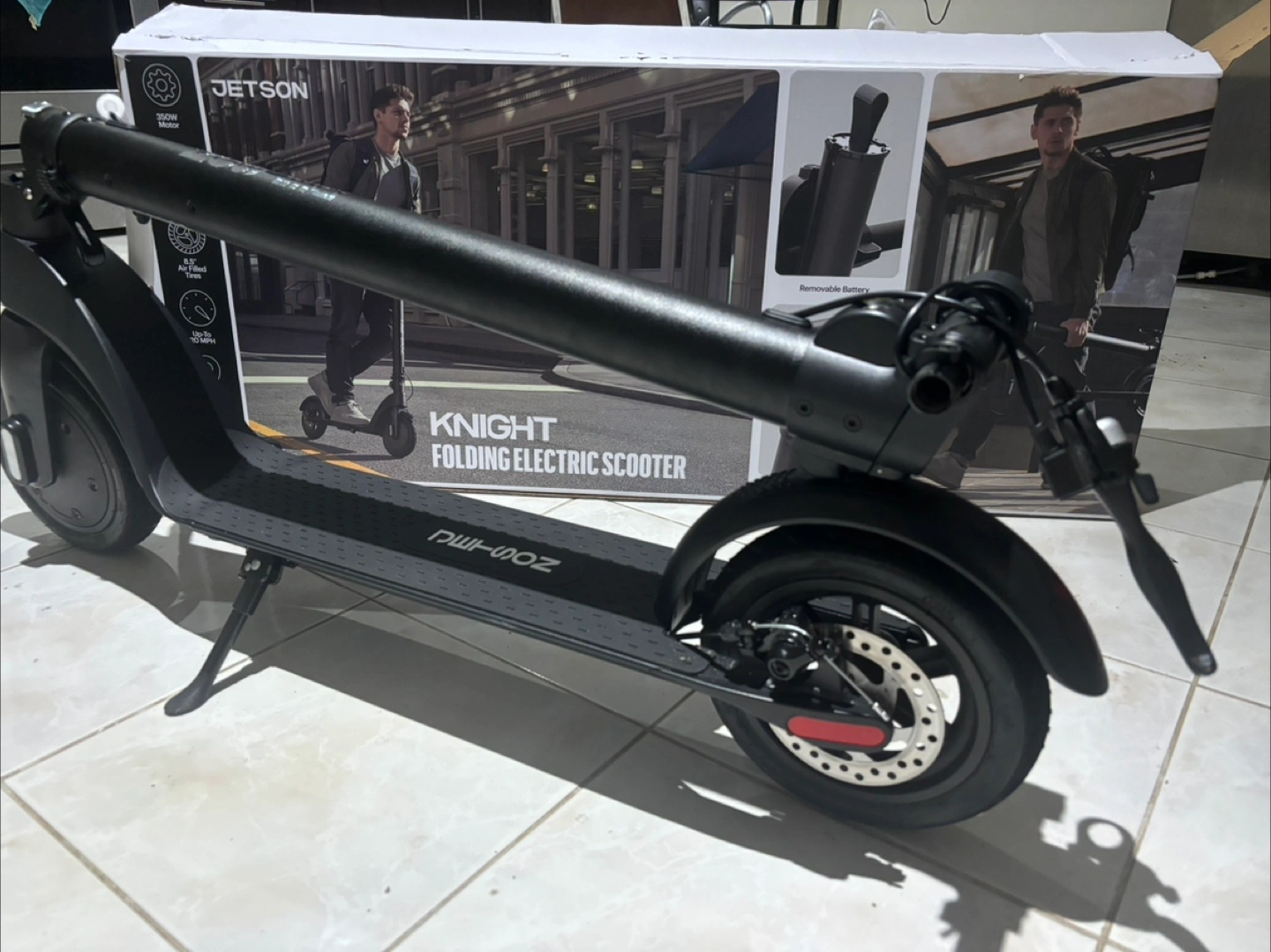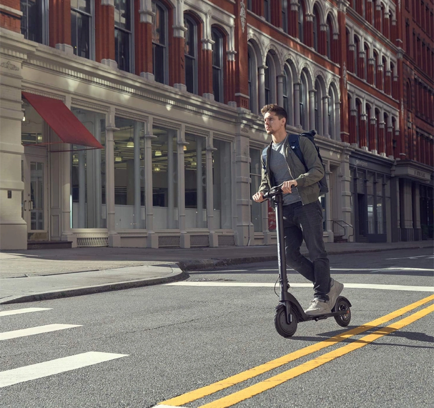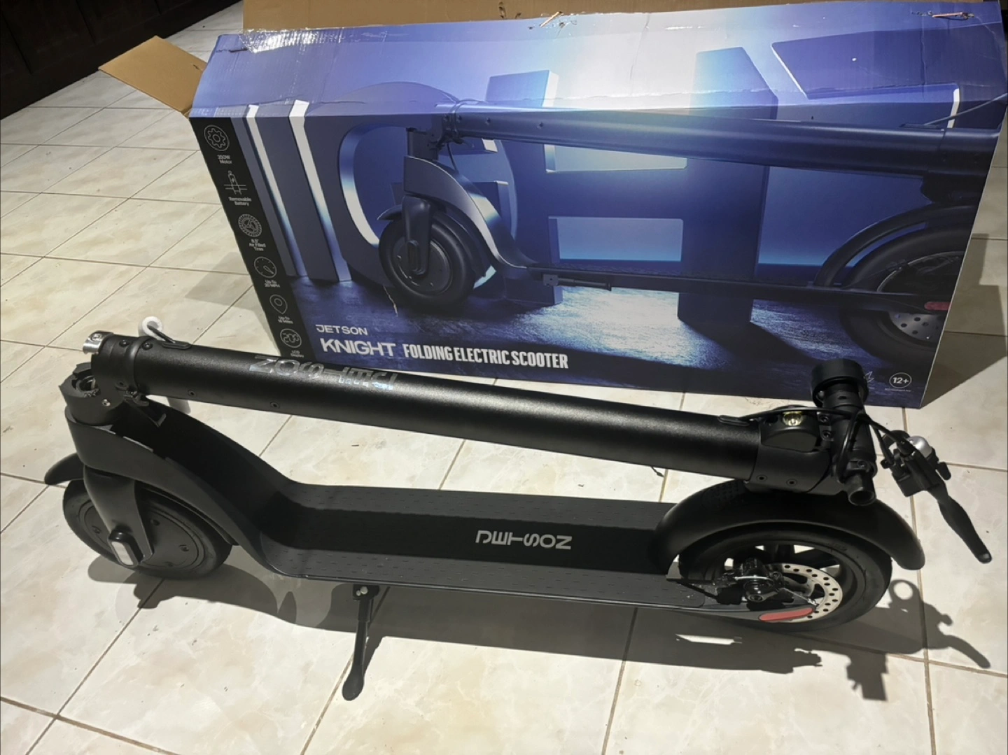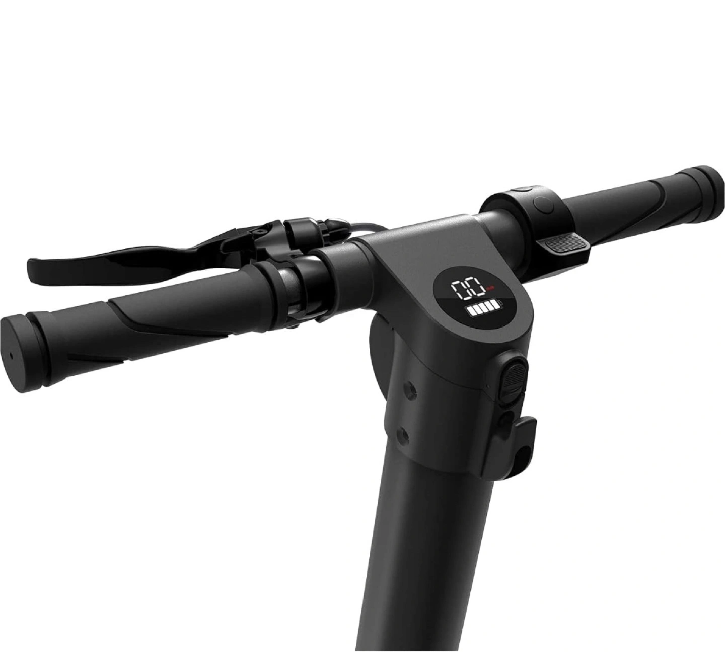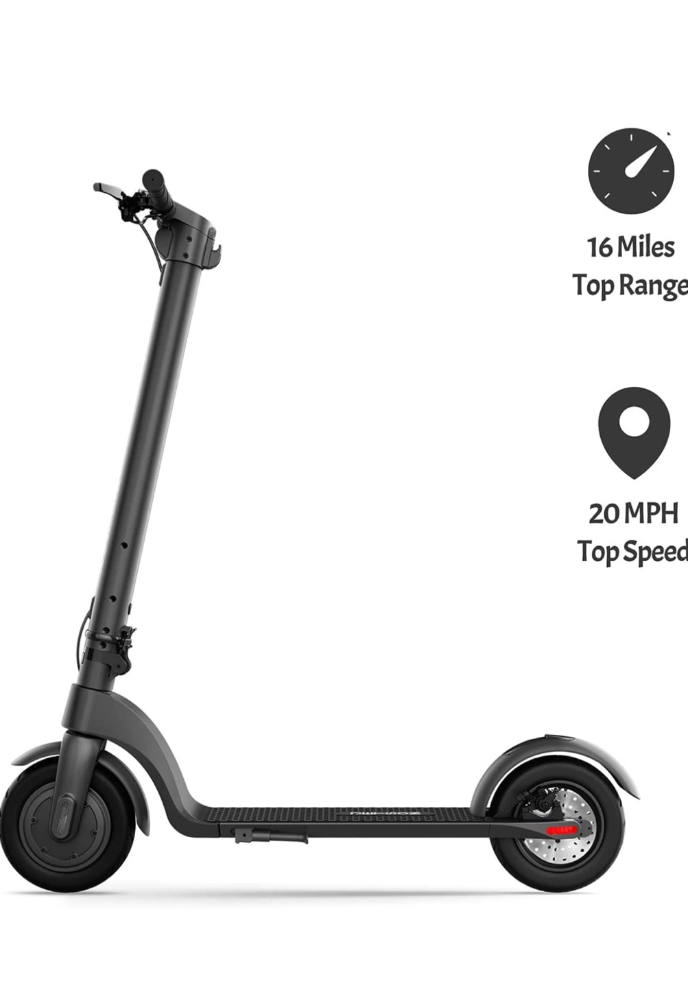 Lightweight, foldable e-scooter. Features a digital display, rear brake, and kickstand. Great for commuting or short trips. Maximum speed of 20 mph and a range of 16 miles.