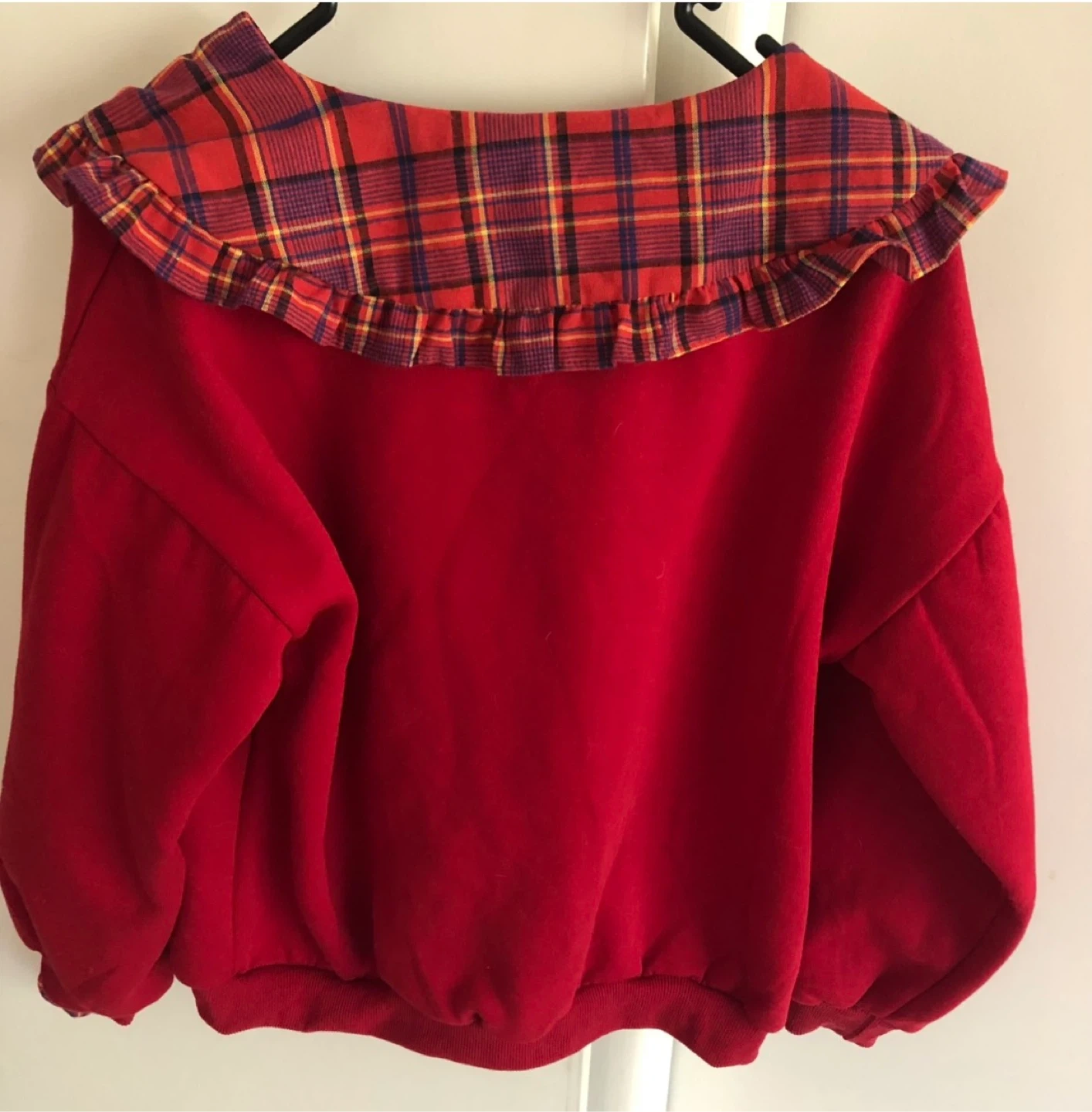 🥕 Red Crewneck Sweatshirt with Plaid Peter Pan Collar Size M