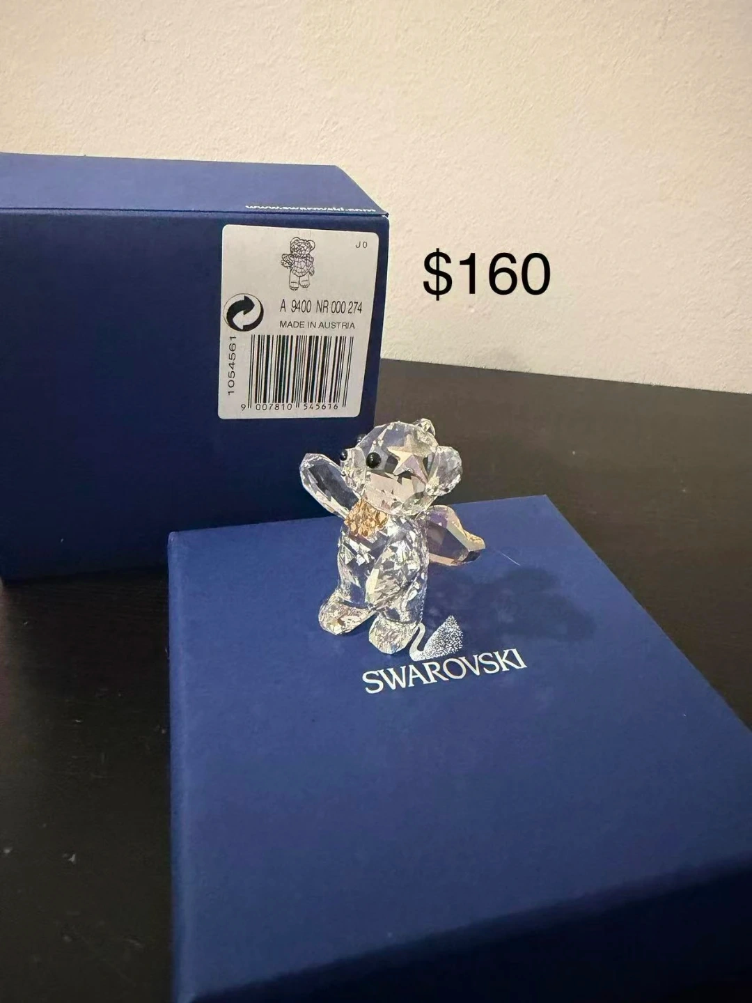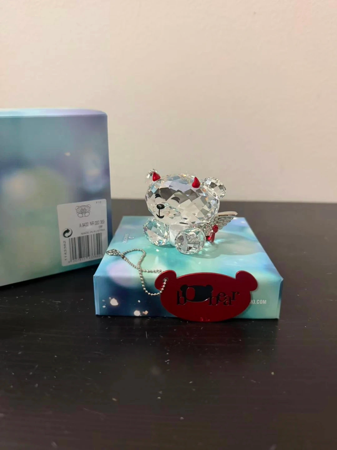 Sparkling crystal figurine of a bear with wings and devil horns. Includes original Swarovski box. Made in Austria. All are brand new.