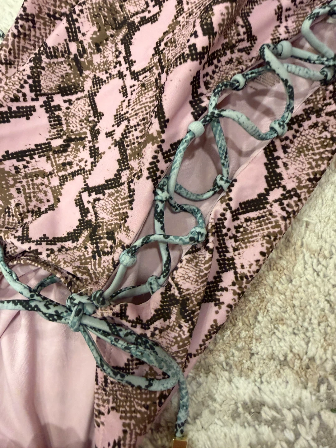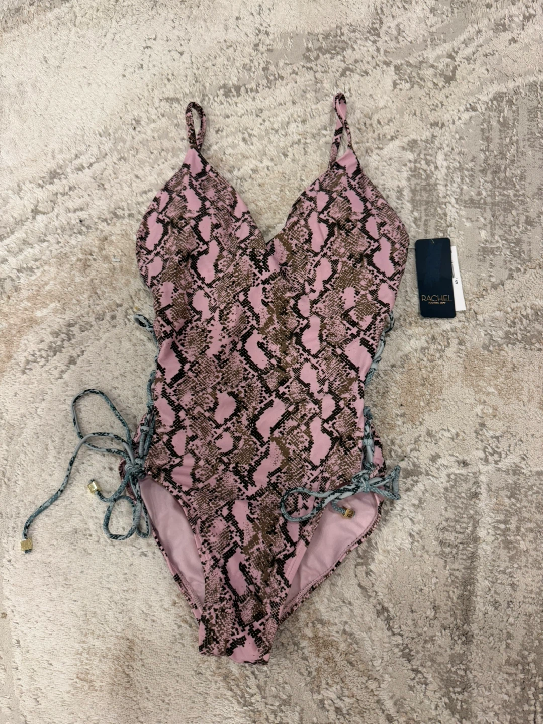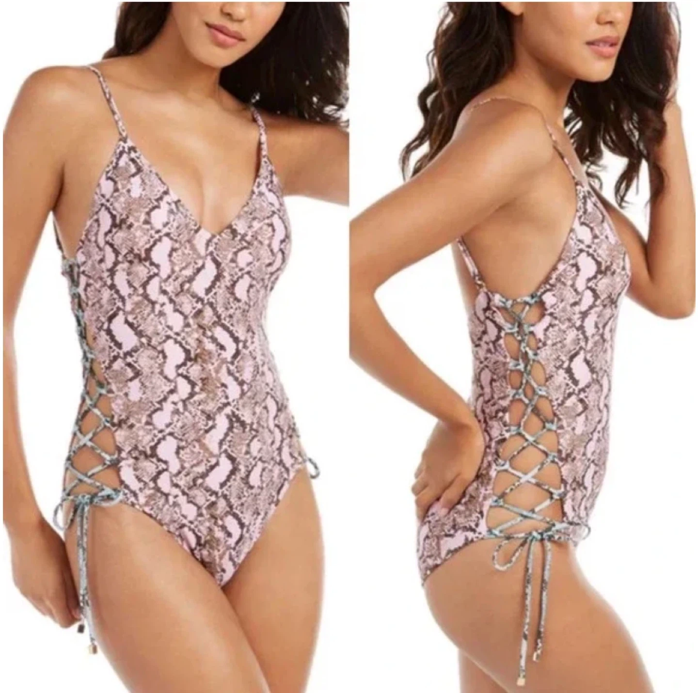 Selling a Rachel Roy one-piece swimsuit with a pink snakeskin print! It features a V-neck and lace-up detailing on the sides. Perfect for the pool or beach. Brand new with tags!