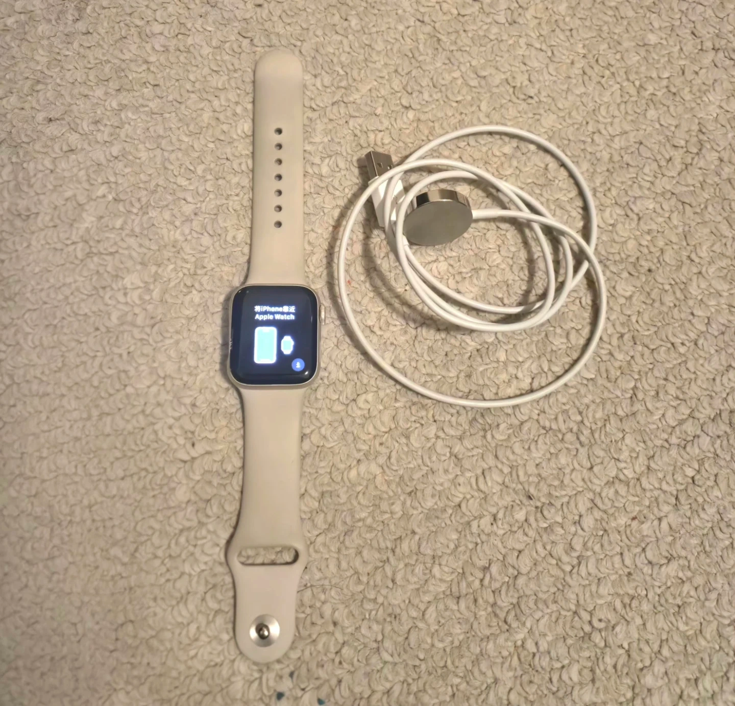 Apple Watch Series SE, 40mm, in good condition. Comes with a light grey sport band and original charging puck. It's a great device for tracking fitness and staying connected. This watch is ready for a new owner!