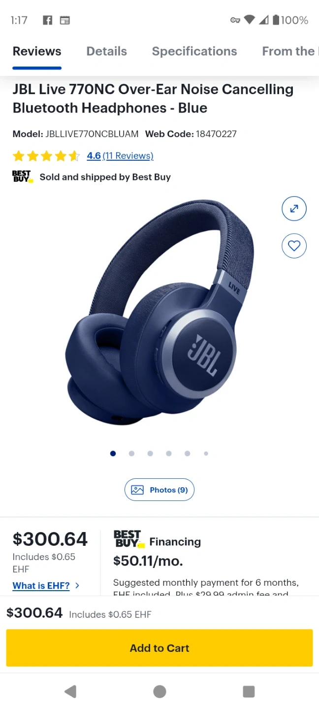 JBL Live 770NC Over-Ear Noise Cancelling Bluetooth Headphones