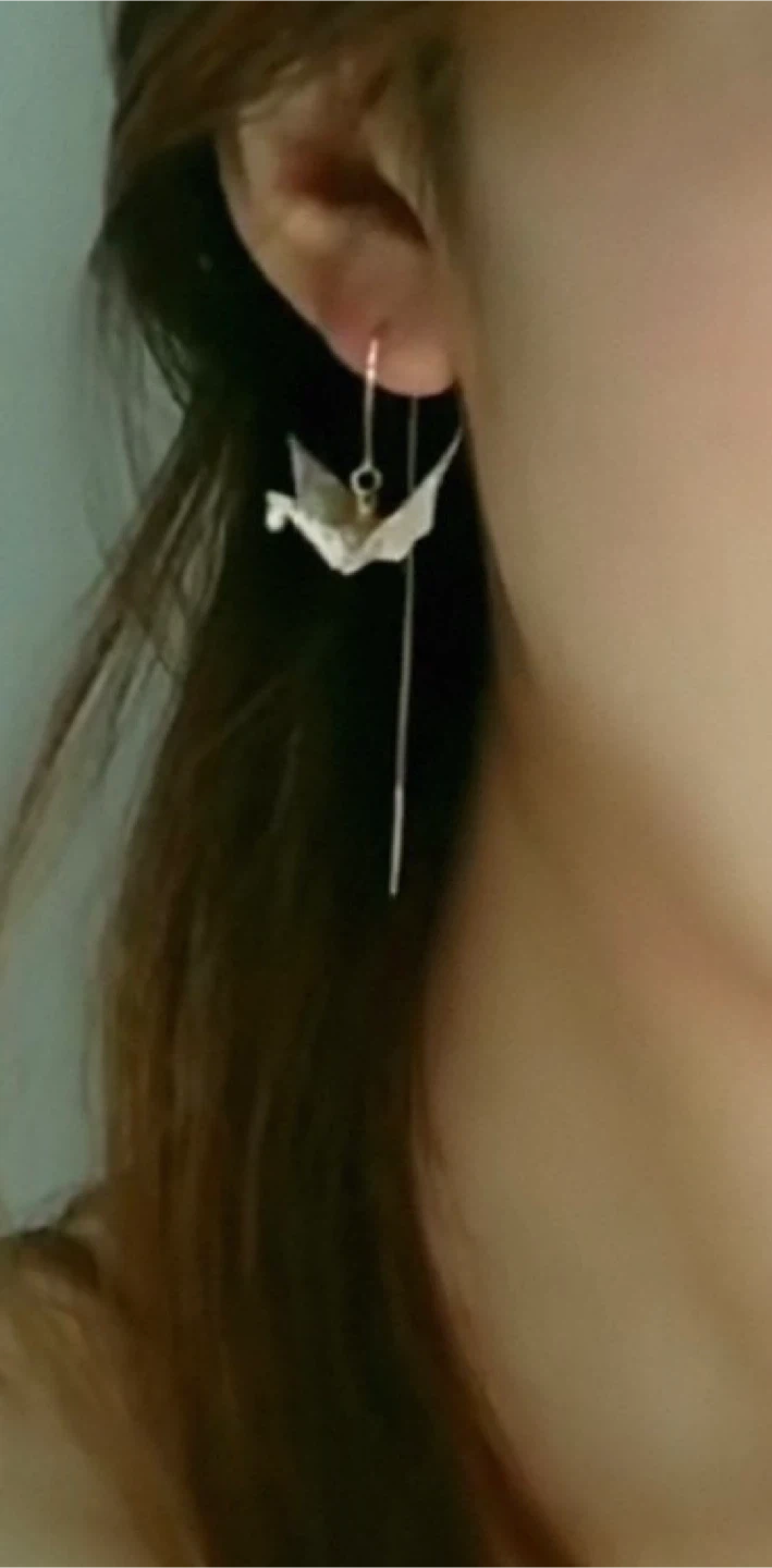 The unique threader earring (1 pc)feature delicate origami cranes, perfect for adding a touch of charm to any outfit. It's made with a fine chain and come in a vibrant red colour. These earrings are a lovely accessory for everyday wear or special occasions!