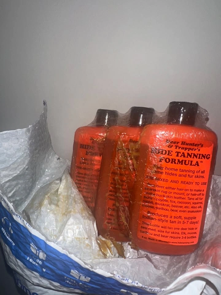 DakotaLine Deer Hunter's & Trappers Hide Tanning Formula 3-pack. Amazon price: $54, $61 with HST. My price: $25. Full disclosure: As shown in the video and pictures, it appears as though one of the bottles leaked at some point, but it's not actively leaking. The Amazon packaging is kinda stuck to it, but it hasn't leaked at all while in my possession. Pickup location: Yonge & Bloor. Payment options: Cash (exact change) or Interac e-transfer. Reason for selling: Purchased at an auction of unopened Amazon shipments that couldn’t be delivered. I do not need this product, so I'm selling it.