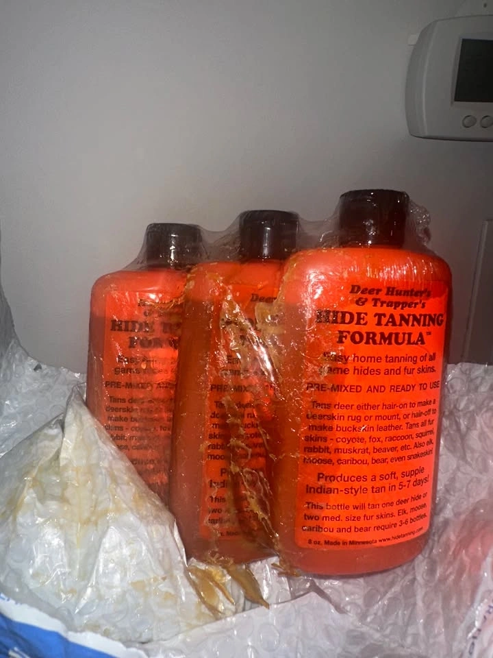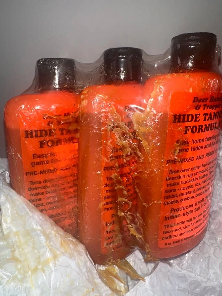 DakotaLine Deer Hunter's & Trappers Hide Tanning Formula 3-pack. Amazon price: $54, $61 with HST. My price: $25. Full disclosure: As shown in the video and pictures, it appears as though one of the bottles leaked at some point, but it's not actively leaking. The Amazon packaging is kinda stuck to it, but it hasn't leaked at all while in my possession. Pickup location: Yonge & Bloor. Payment options: Cash (exact change) or Interac e-transfer. Reason for selling: Purchased at an auction of unopened Amazon shipments that couldn’t be delivered. I do not need this product, so I'm selling it.