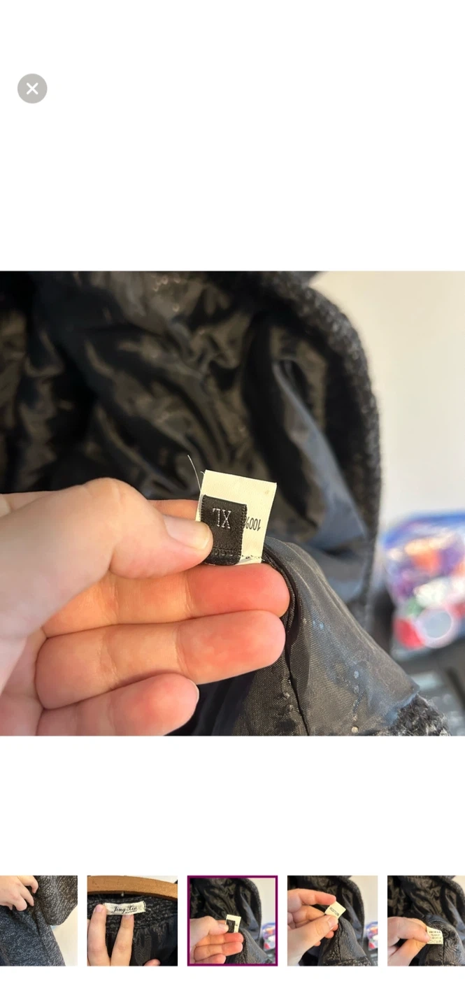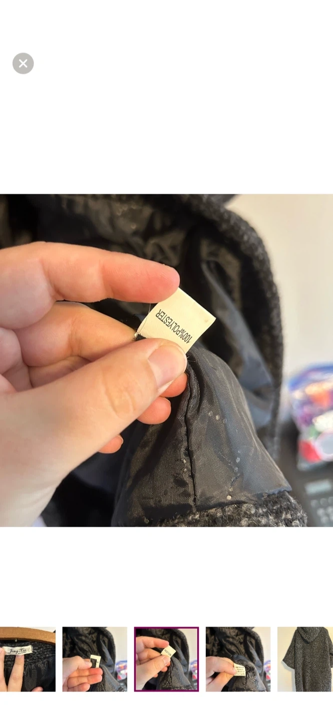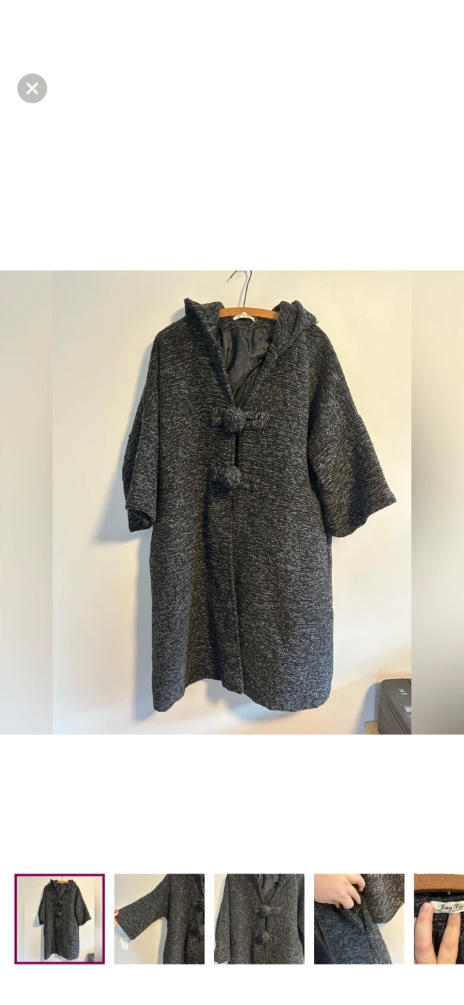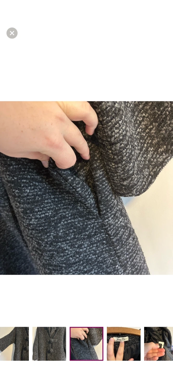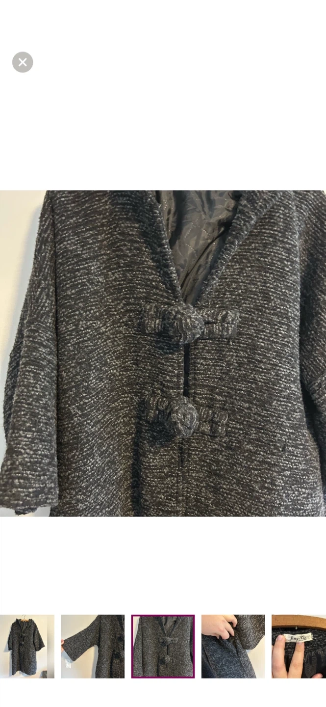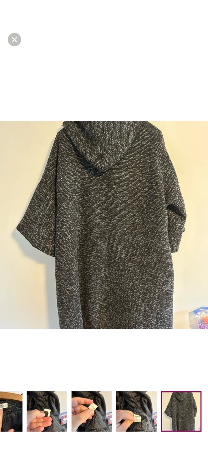 Jing xiu brand. Funky hooded jacket with 3/4 length sleeves and puff loop closure. Black & grey knit, medium weight. Size xl. Brand new condition