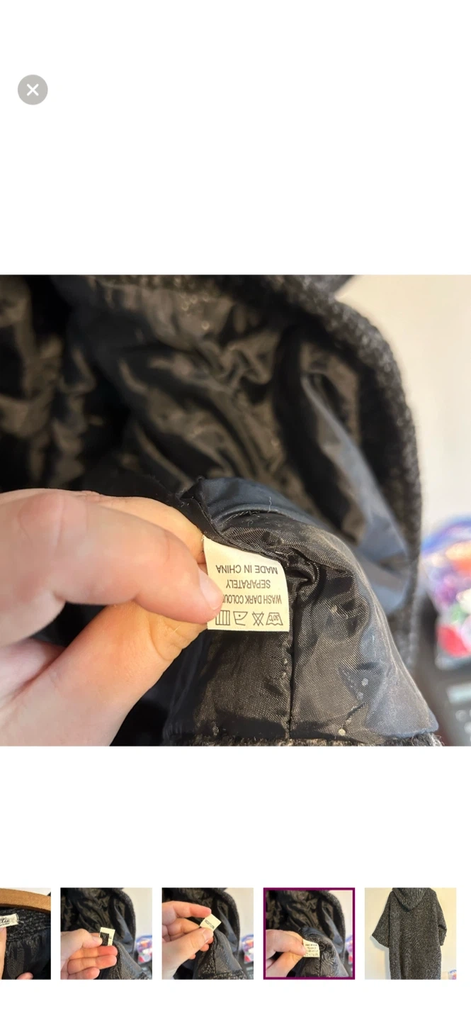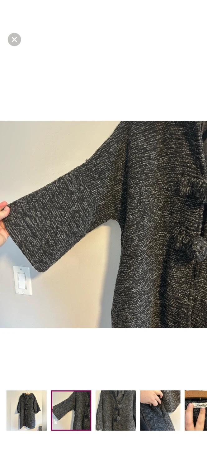 Jing xiu brand. Funky hooded jacket with 3/4 length sleeves and puff loop closure. Black & grey knit, medium weight. Size xl. Brand new condition
