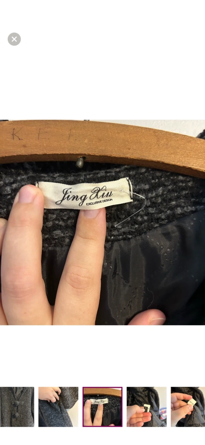 Jing Xiu Women's Grey Tweed 3/4 Sleeve Coat