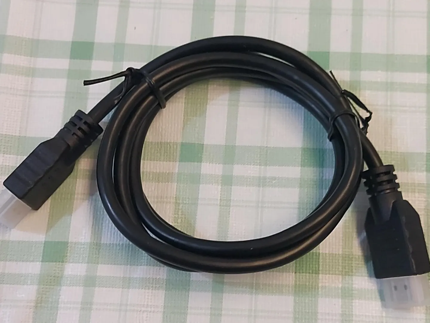 This is a standard black HDMI cable. It's used for connecting audio and video devices. The cable is approximately 4 feet long.