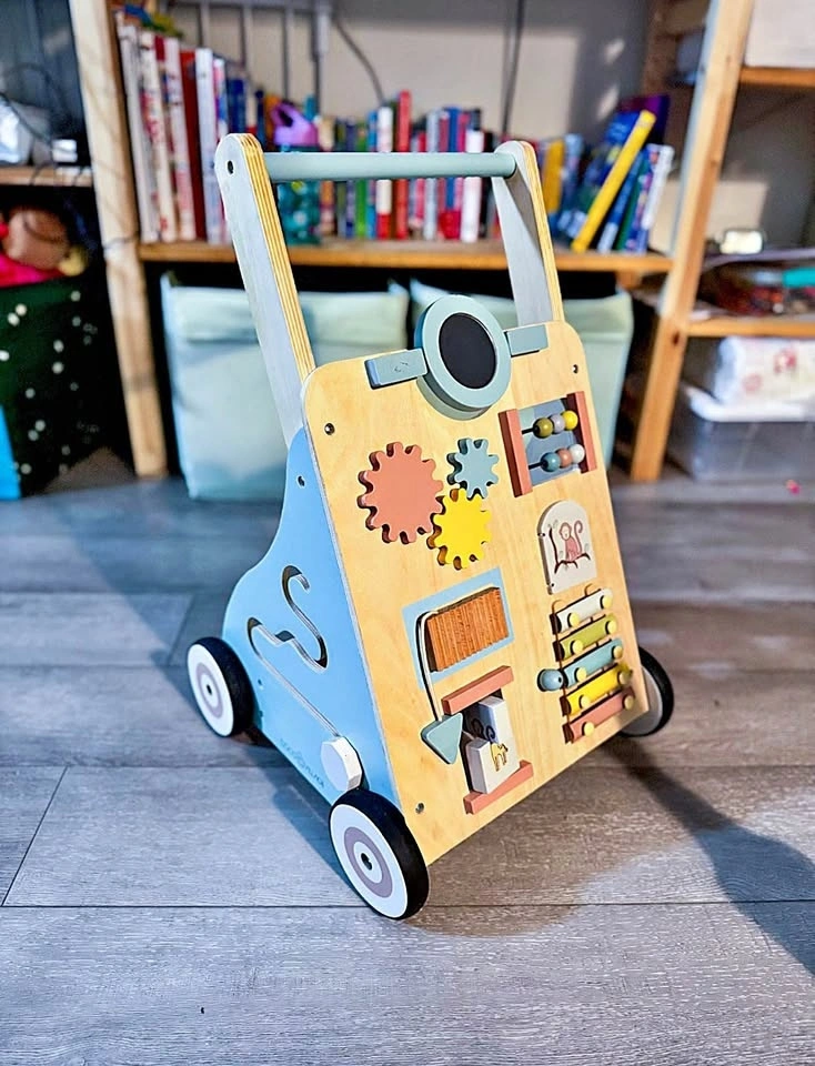 This stable and solid walker helps support your child's first steps, allowing them to explore with confidence. The front is packed with fun games, and the back offers space to carry toys or a favorite plush.