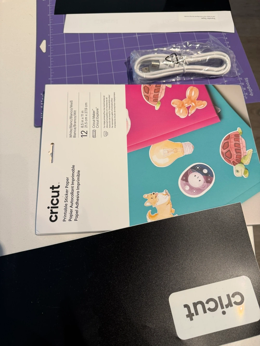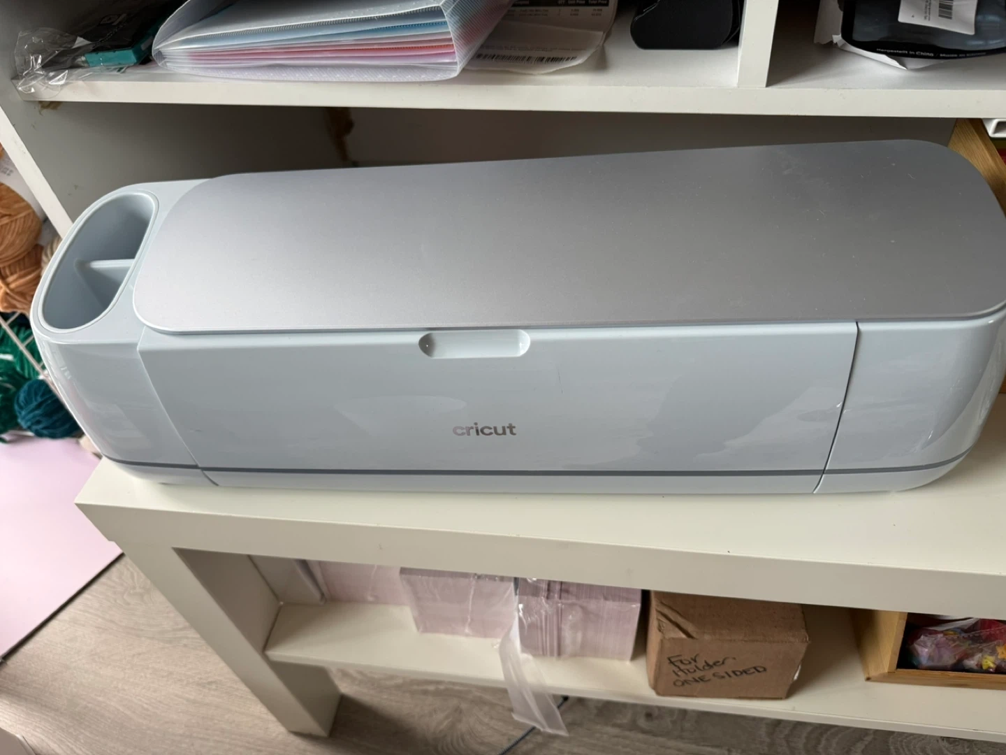 This is a Cricut Maker 3 cutting machine. It's white and silver with a sleek design. It comes with various cutting mats and printable sticker paper. Works with Cricut Smart Materials. USB cable and all supplies shown included. Will come in original box! It has only been used once to cut a square on cardstock.
