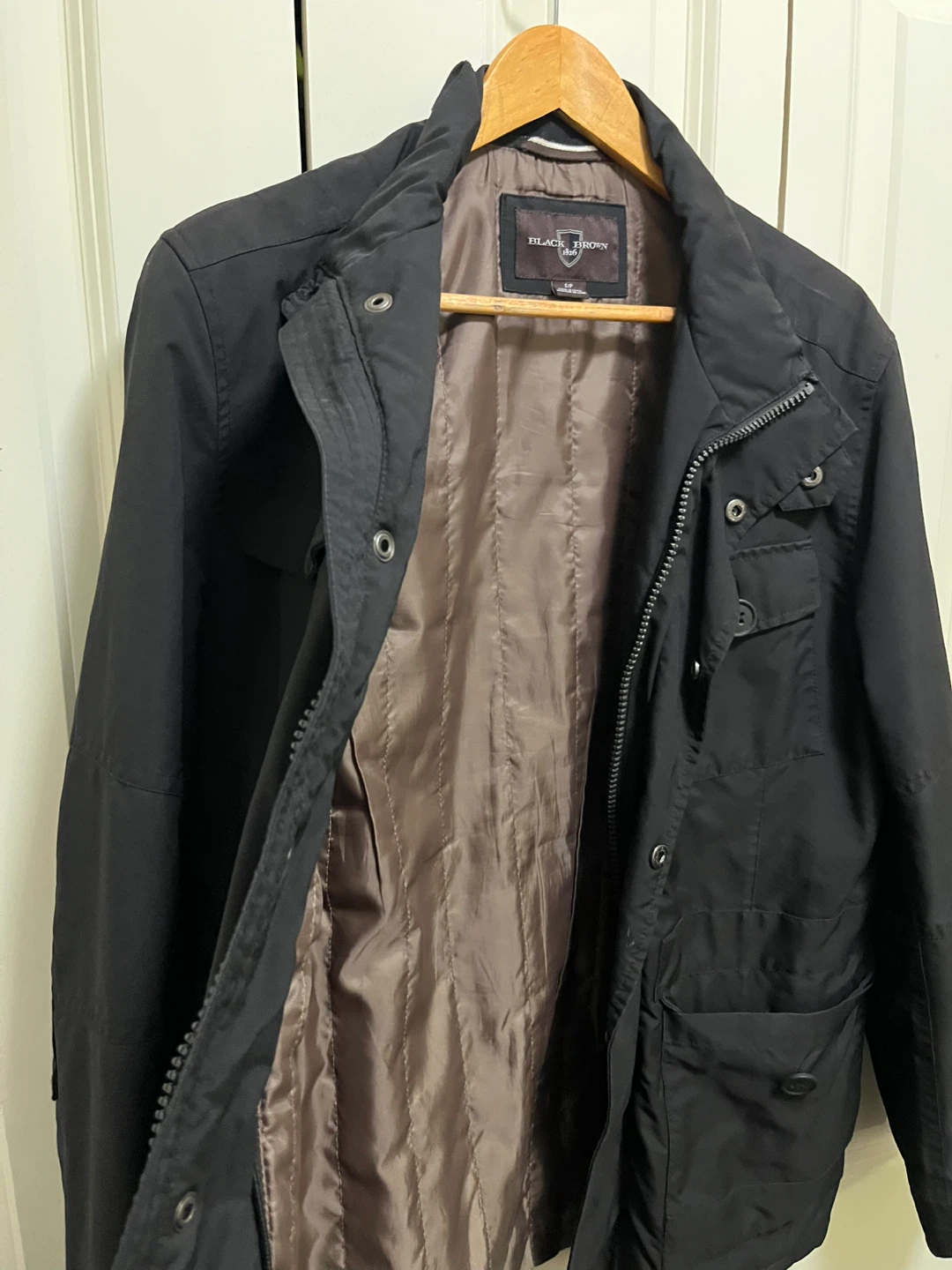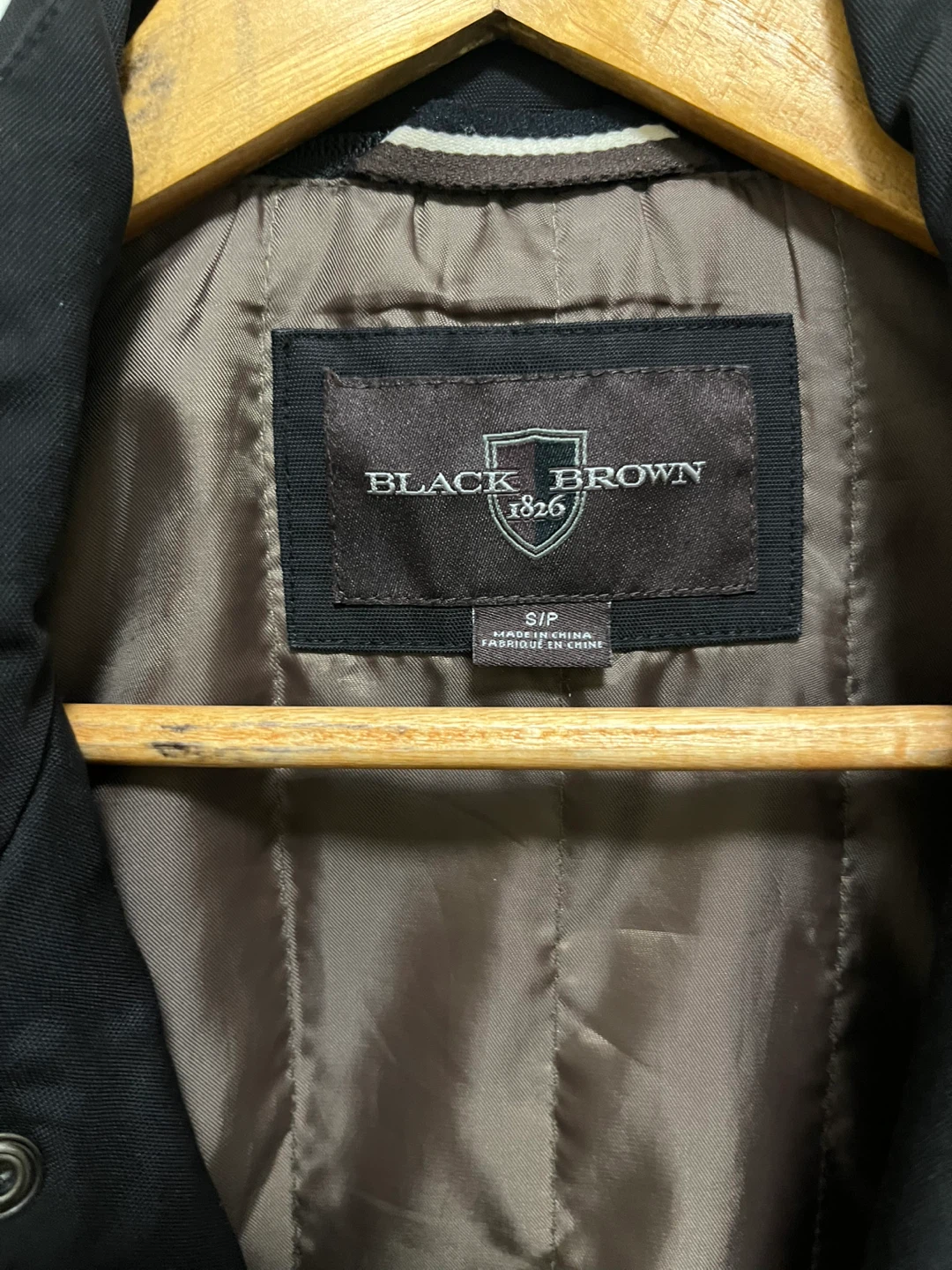 This is a Black Brown 1826 jacket. It's a size S/P. Made in China. It features multiple front pockets and a zipper closure.