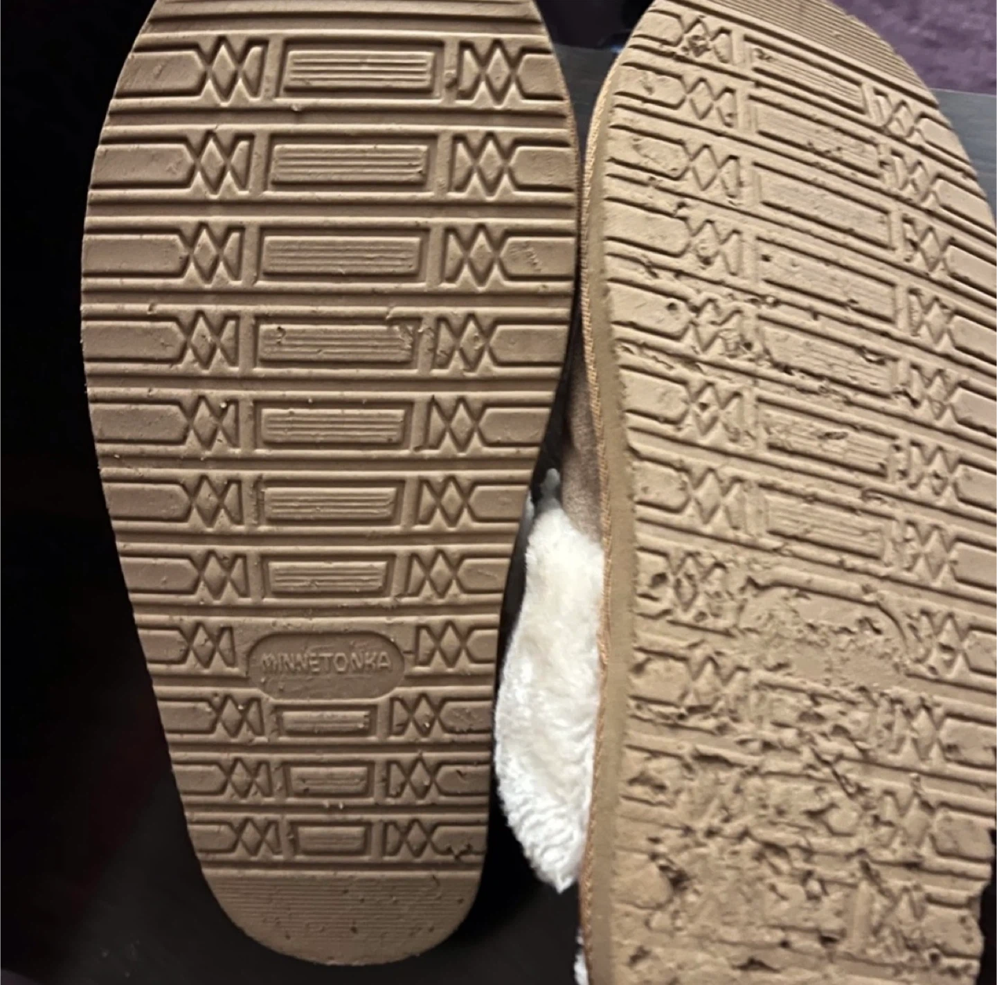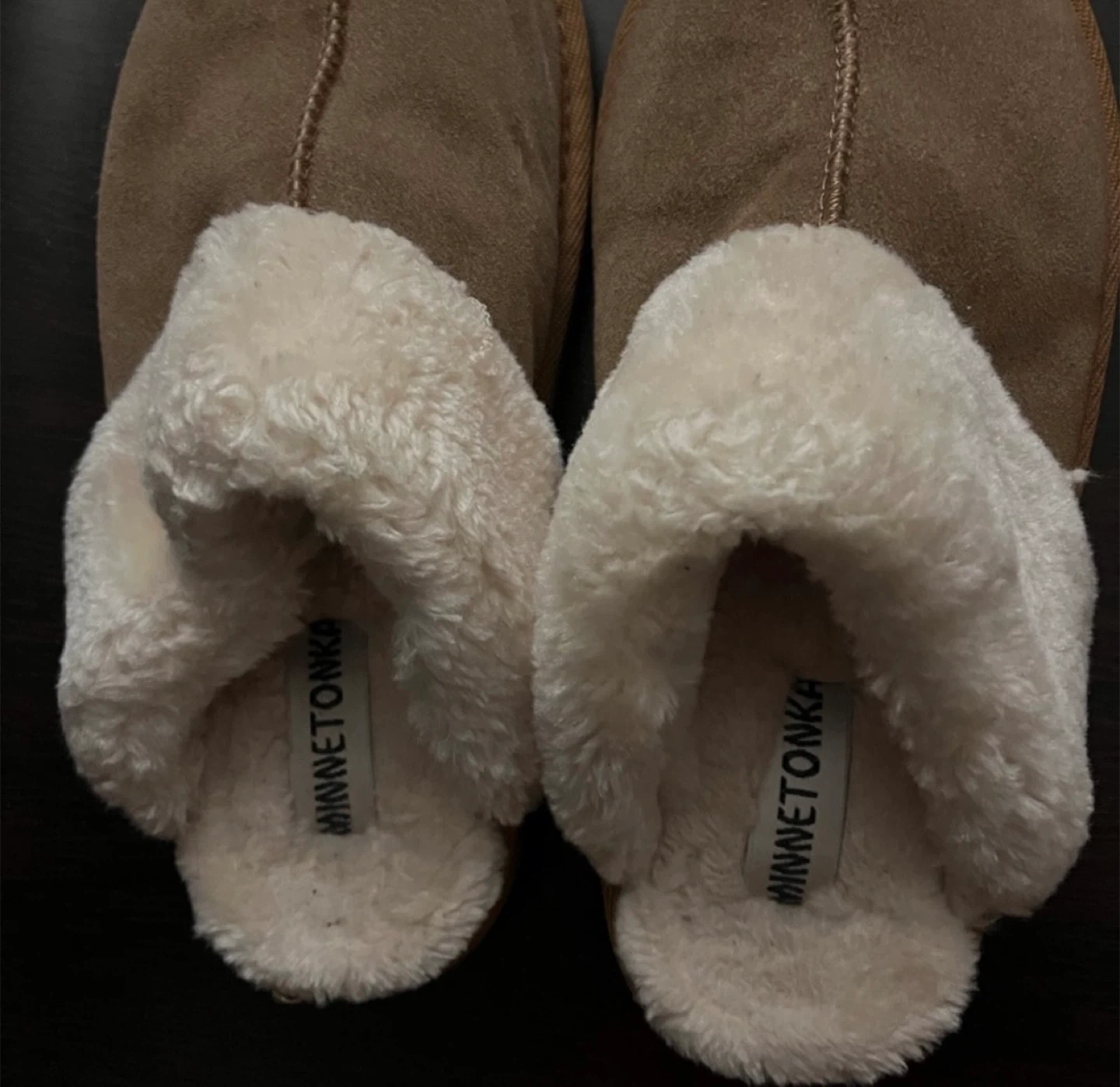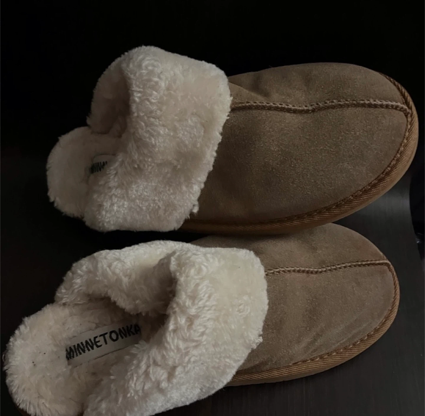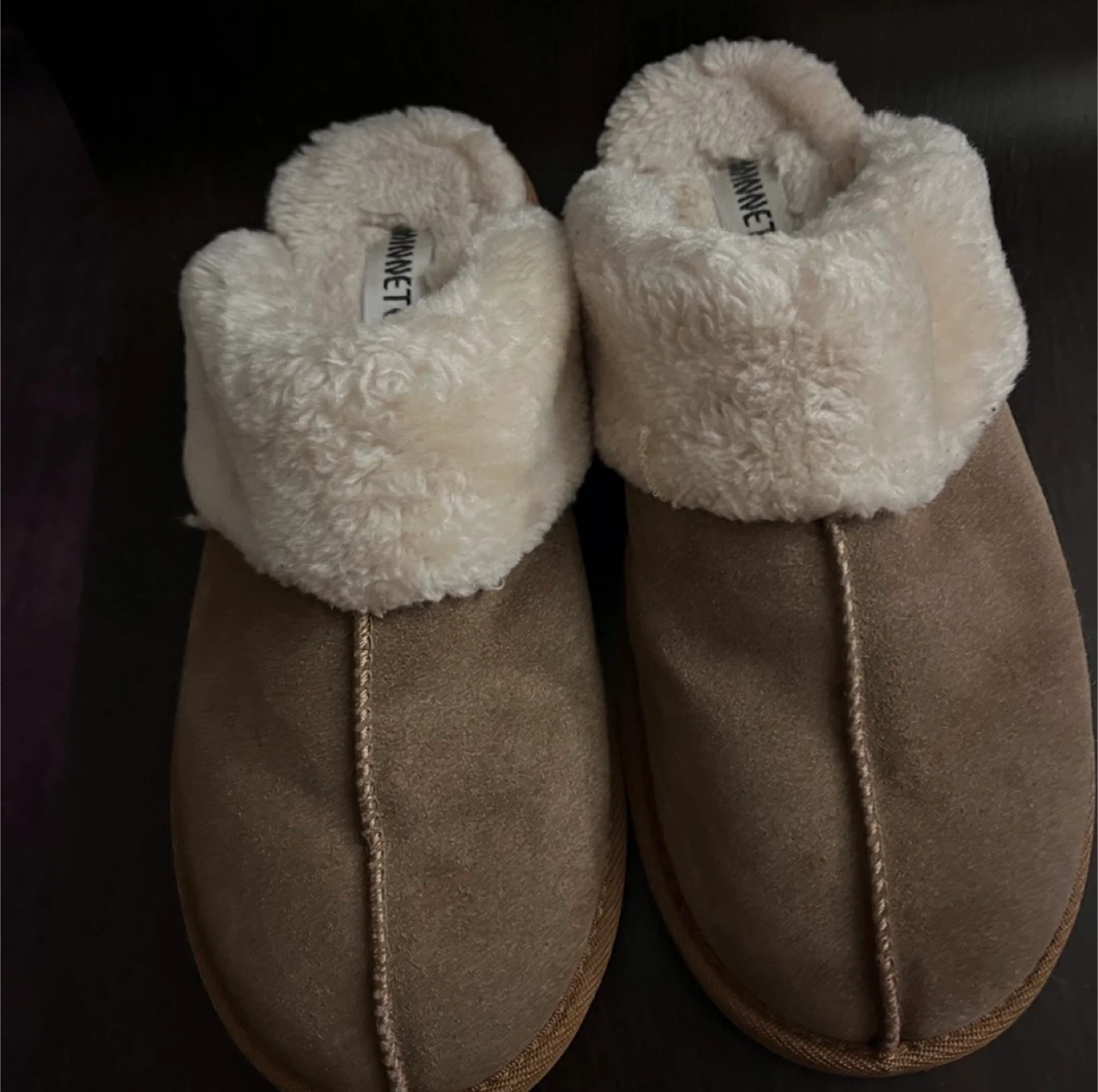 MinneTonka Women’s Chesney Slippers Size 10W. Plush comfort slippers with a flexible, hard sole. It can be worn inside or outdoor. It’s used but still in great shape with a lot of life left.