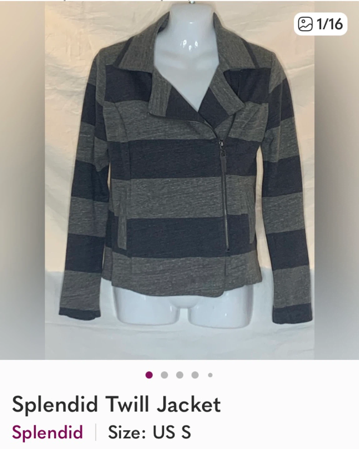 Worn once! Selling a lovely Splendid twill jacket in size small! It features a stylish striped design in shades of grey. Perfect for adding a touch of casual chic to your wardrobe