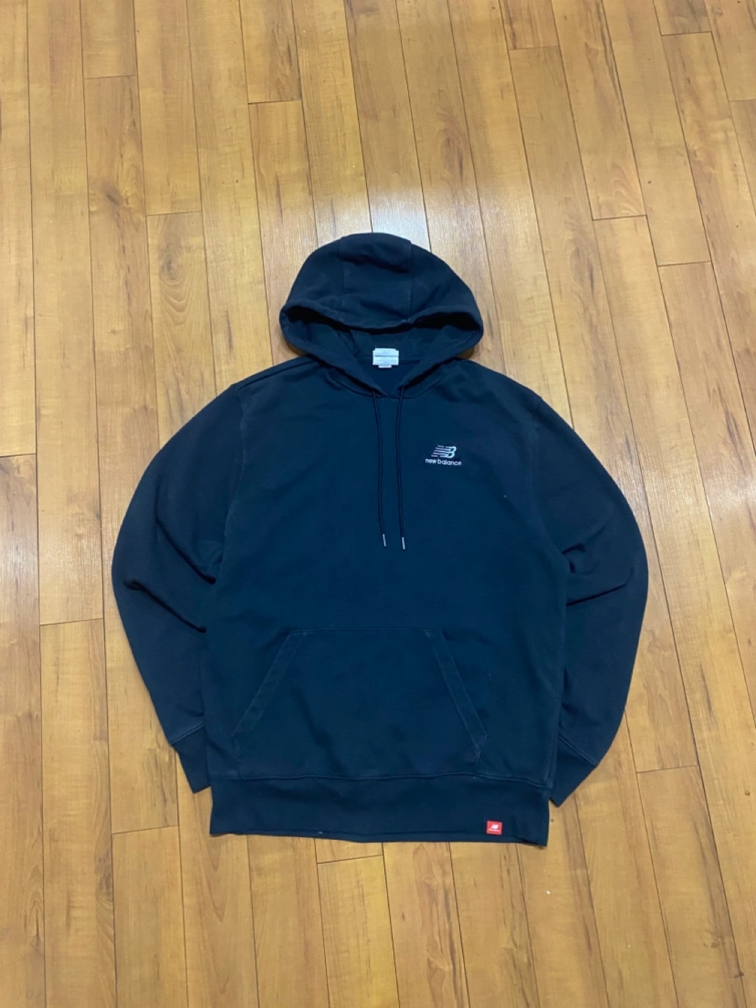 A cozy dark blue hooded sweatshirt. Features a kangaroo pocket and a drawstring hood. The New Balance logo is small on the chest. Snuggling up in a warm sweatshirt is always a great feeling.