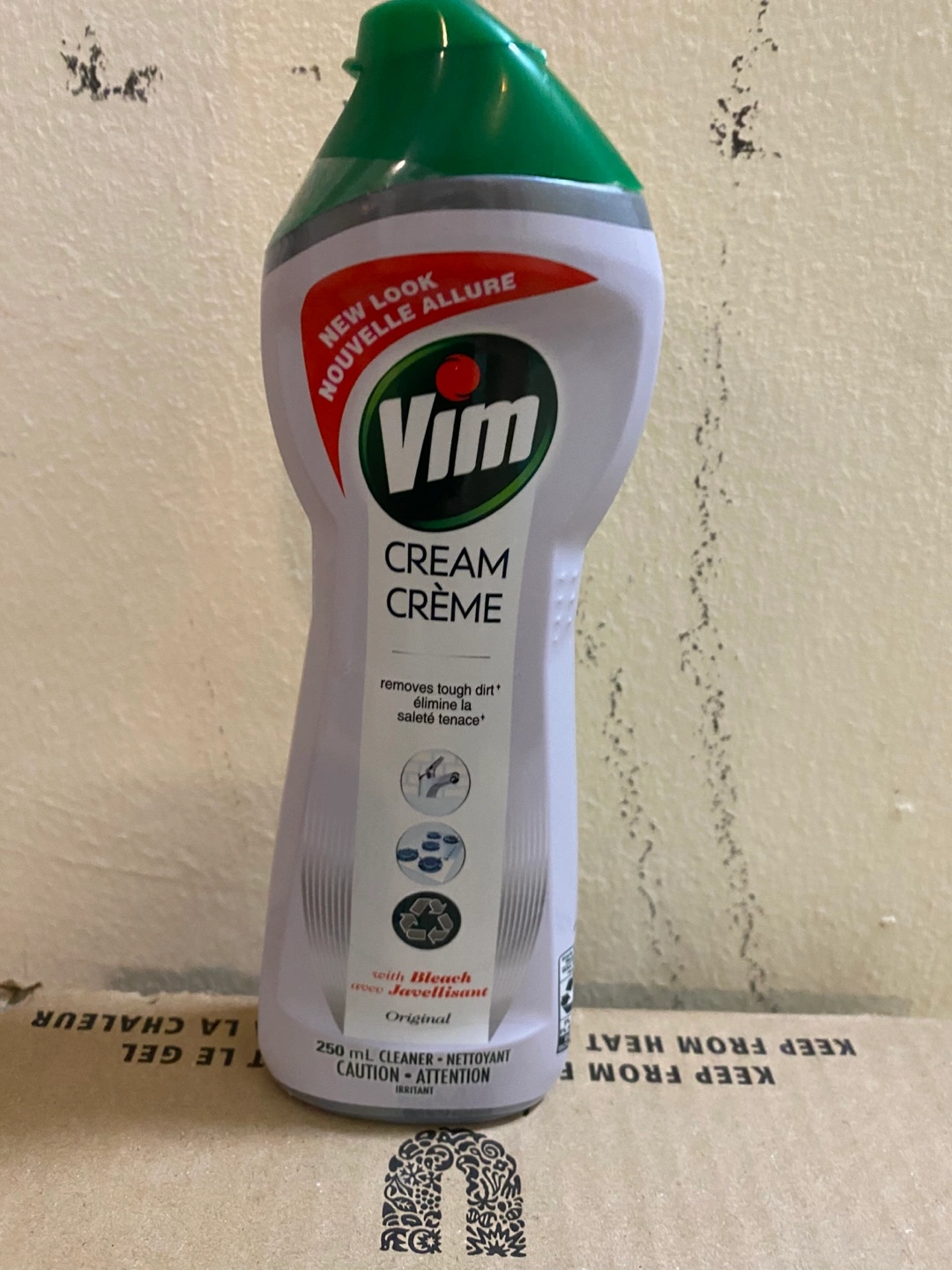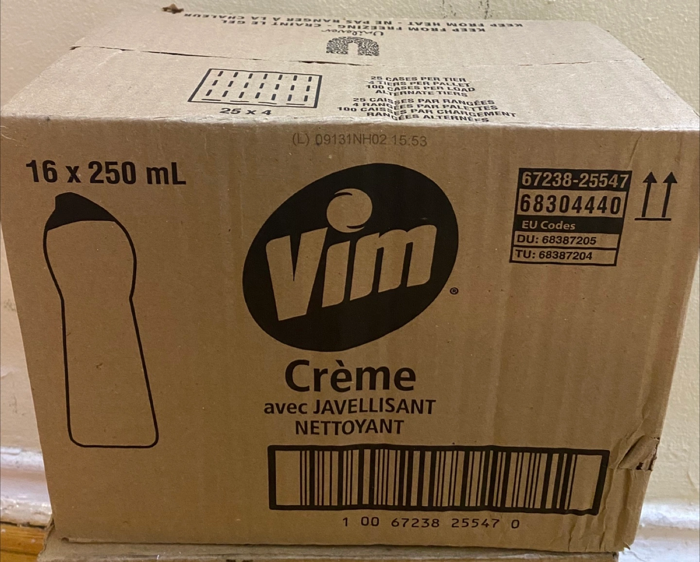 Box of 16, 250ml bottles of Vim Crème cleaner Original with bleach. Bulk purchase, great for cleaning.